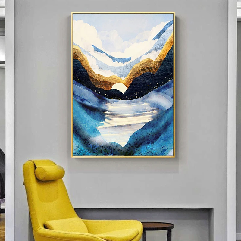Картина на холсте с абстрактным пейзажем в скандинавском стиле, с изображением гор и восхода солнца, настенные плакаты и принты, домашнее украшение для гостиной