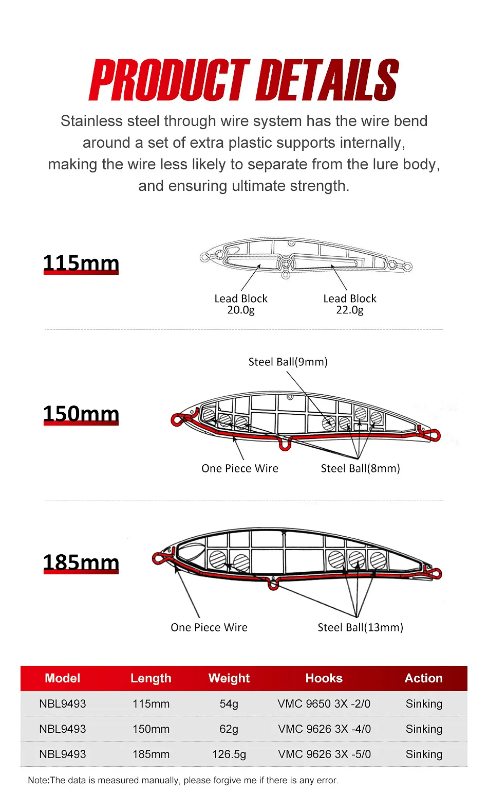 NOEBY 2020 Новый стиль 115/150/185 мм через провод-конструкция тунец GT Sea карандаш приманки для ловли рыбы, NBL9493