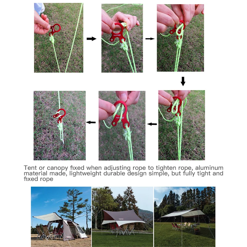 2. guyline регулировки компактны и сверхлегкие, конструкция с 3 отверстиями, более удобны в использовании, чем другие продукты, и более легко.