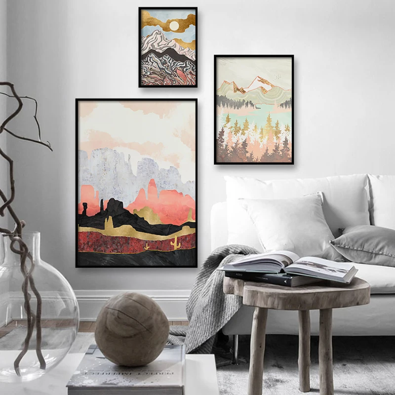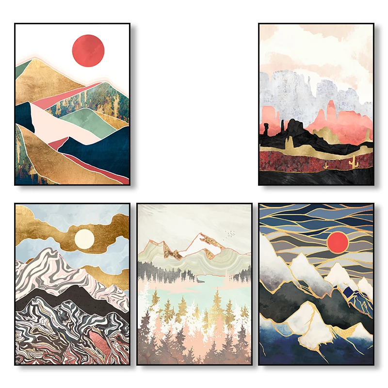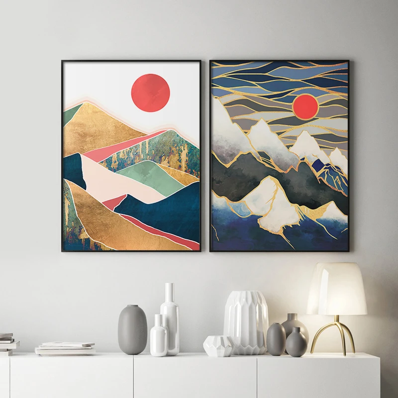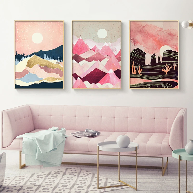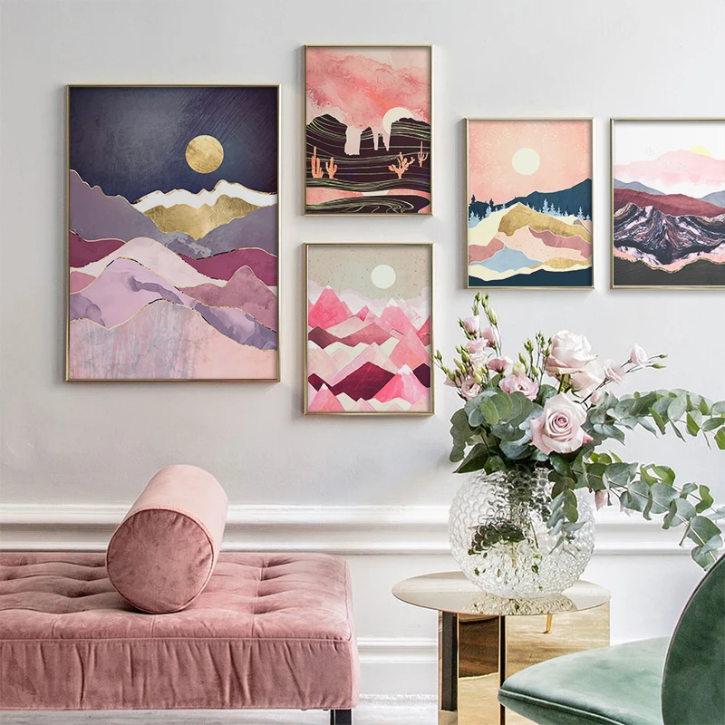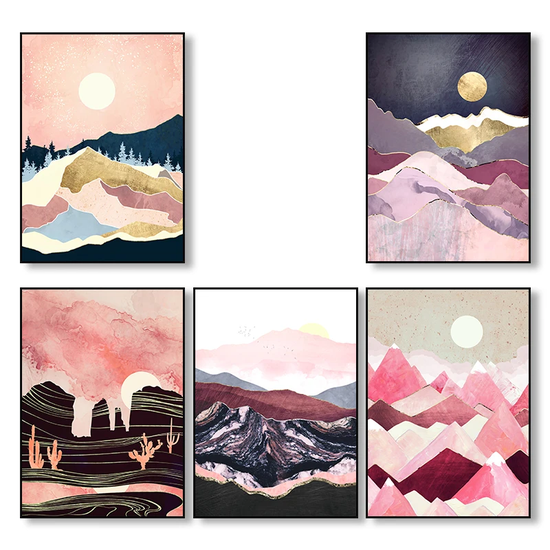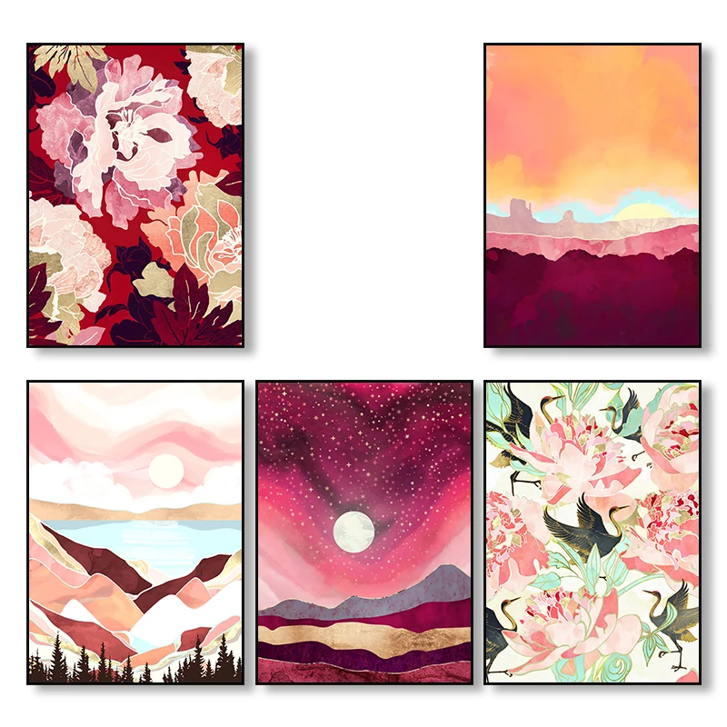 Плакаты с японскими цветами вишни, пейзаж, розовый восход, гора, Картина на холсте, настенные художественные картины, декор для комнаты и дома