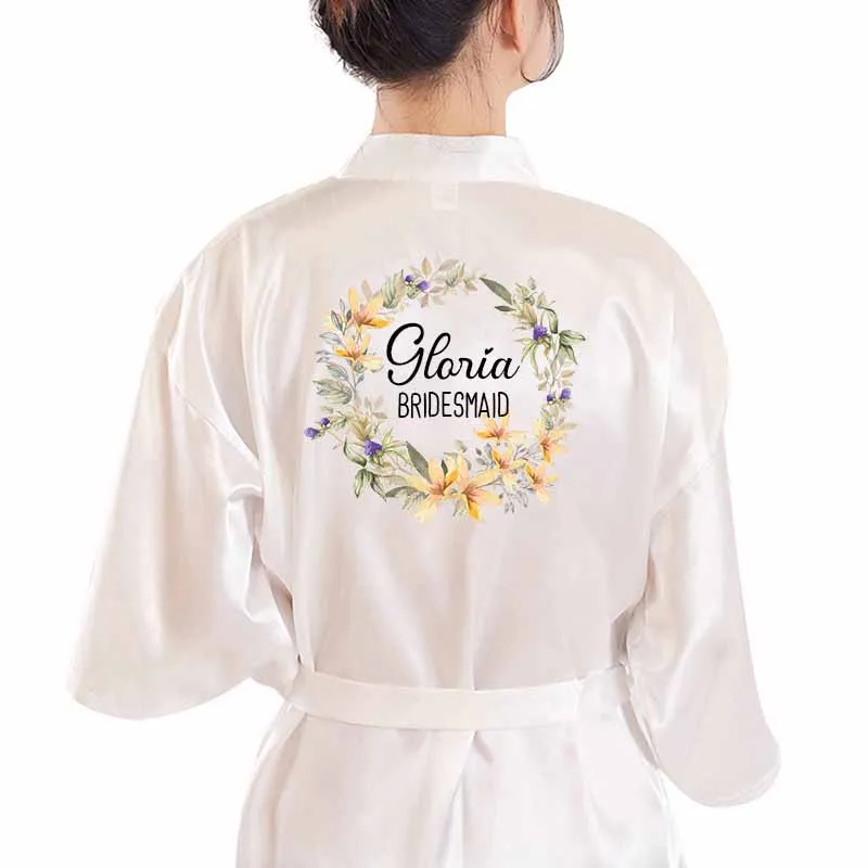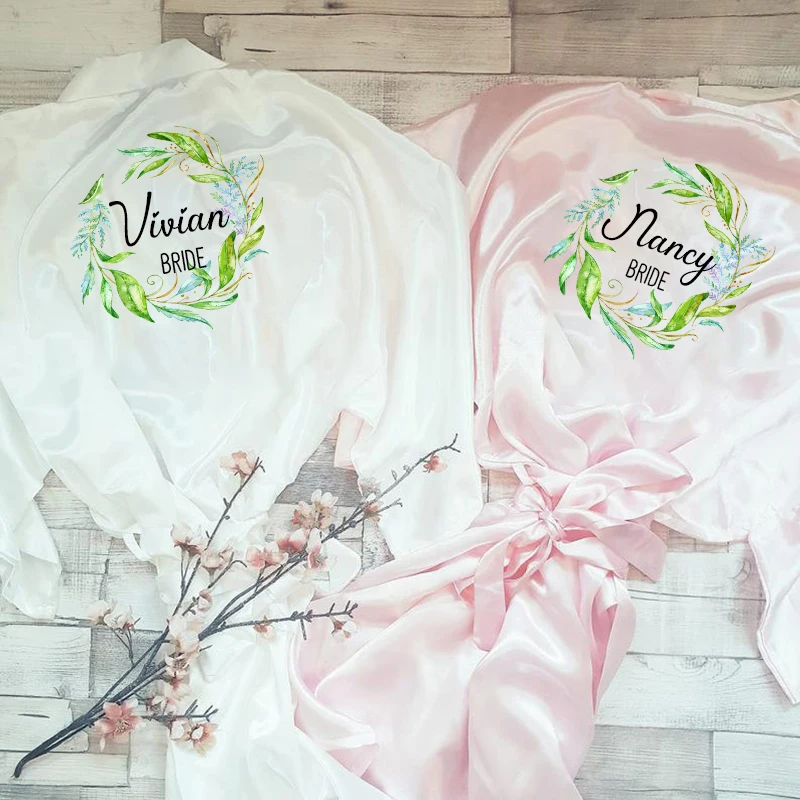 Свадебный Атласный халат, индивидуальное имя, цветочный принт
