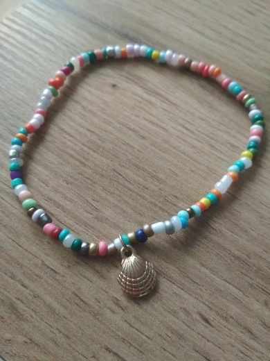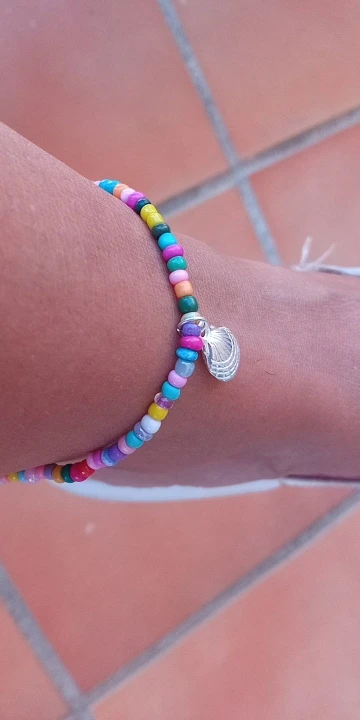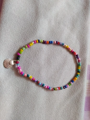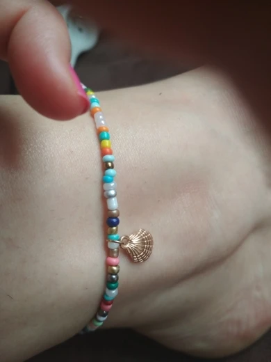 Простой и красивый, он не подходит для браслета, если у вас маленькое запястье, потому что оно большое, я не знаю, потеряет ли детали раковины цвет с использованием, но очень красивый браслет на лето