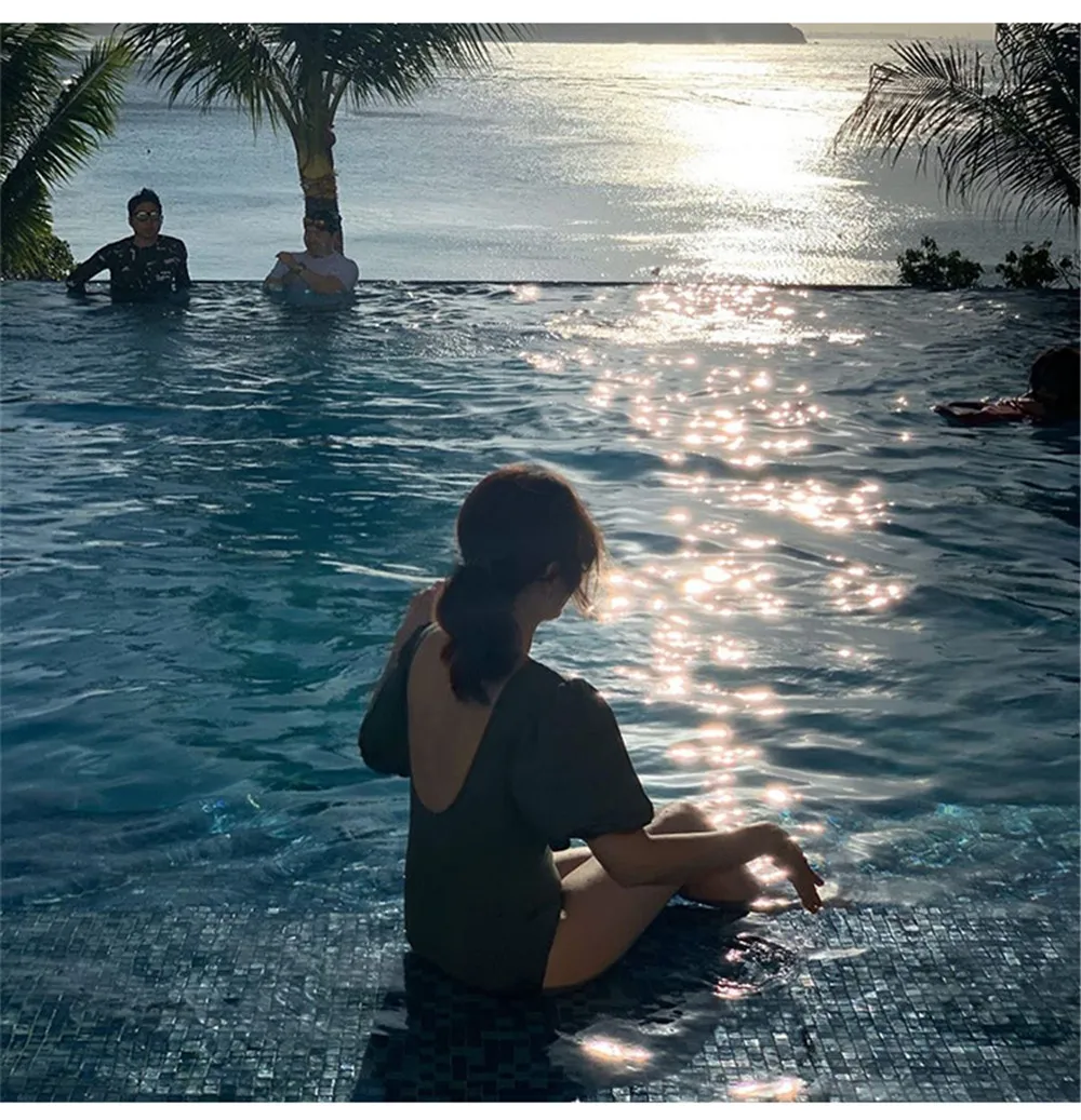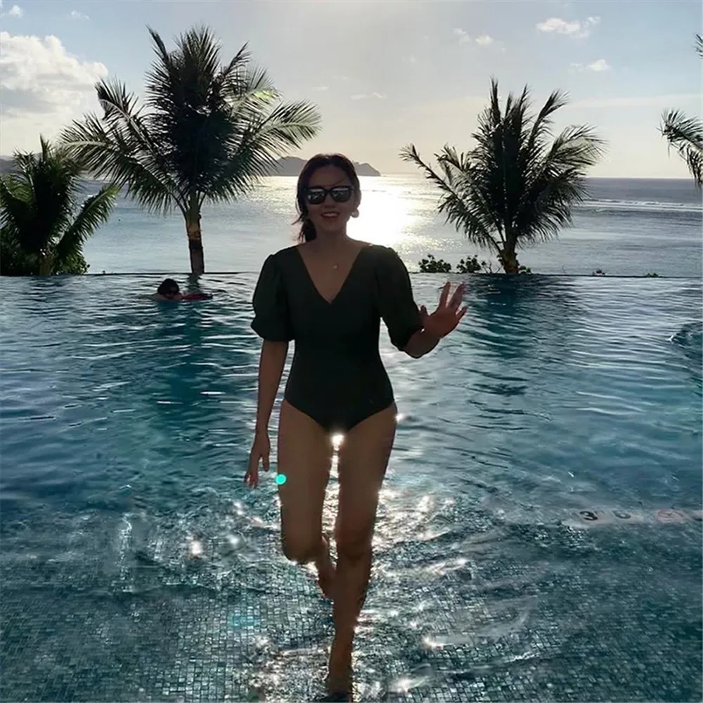Слитный купальник с коротким рукавом, Женская однотонная одежда для...