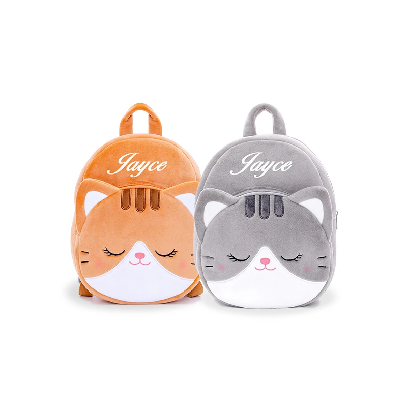 Персонализированный плюшевый рюкзак Gloveleya, серый Рюкзак с котом, детские мягкие плюшевые сумки, рюкзаки с животными, подарки для девочек на заказ