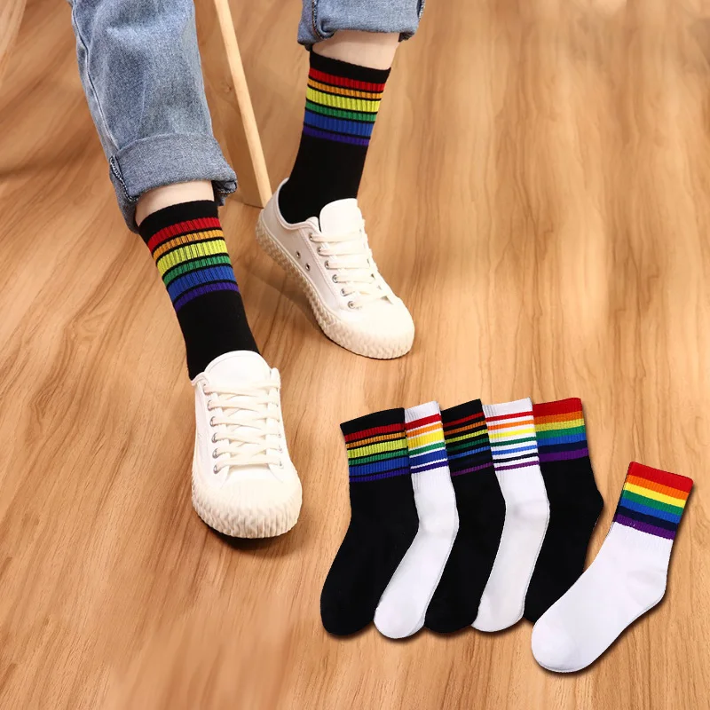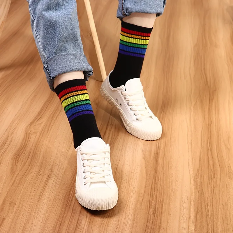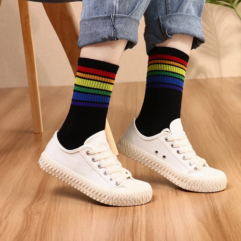 Носки женские хлопковые в радужную полоску, модные теплые повседневные подарочные, в Корейском стиле Харадзюку, 1 пара