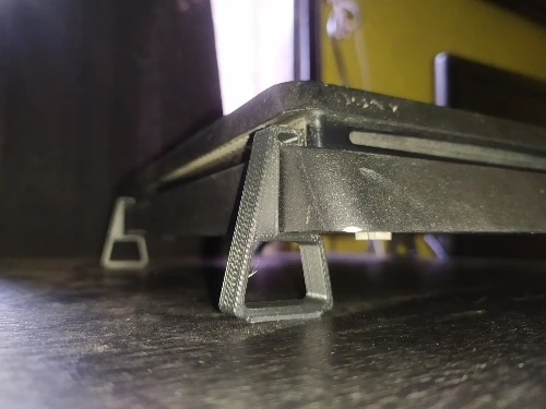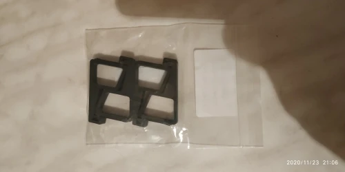 Подставки получил, использую, как видно на фото. Имеется минус. Они просто одеваются и не фиксируются. Даже при монтаже проблемы, они вылетают. Хотелось бы, чтобы они защëлкивались и не двигались. Для этого немного надо изменить конструкцию и использовать более мягкий материал.