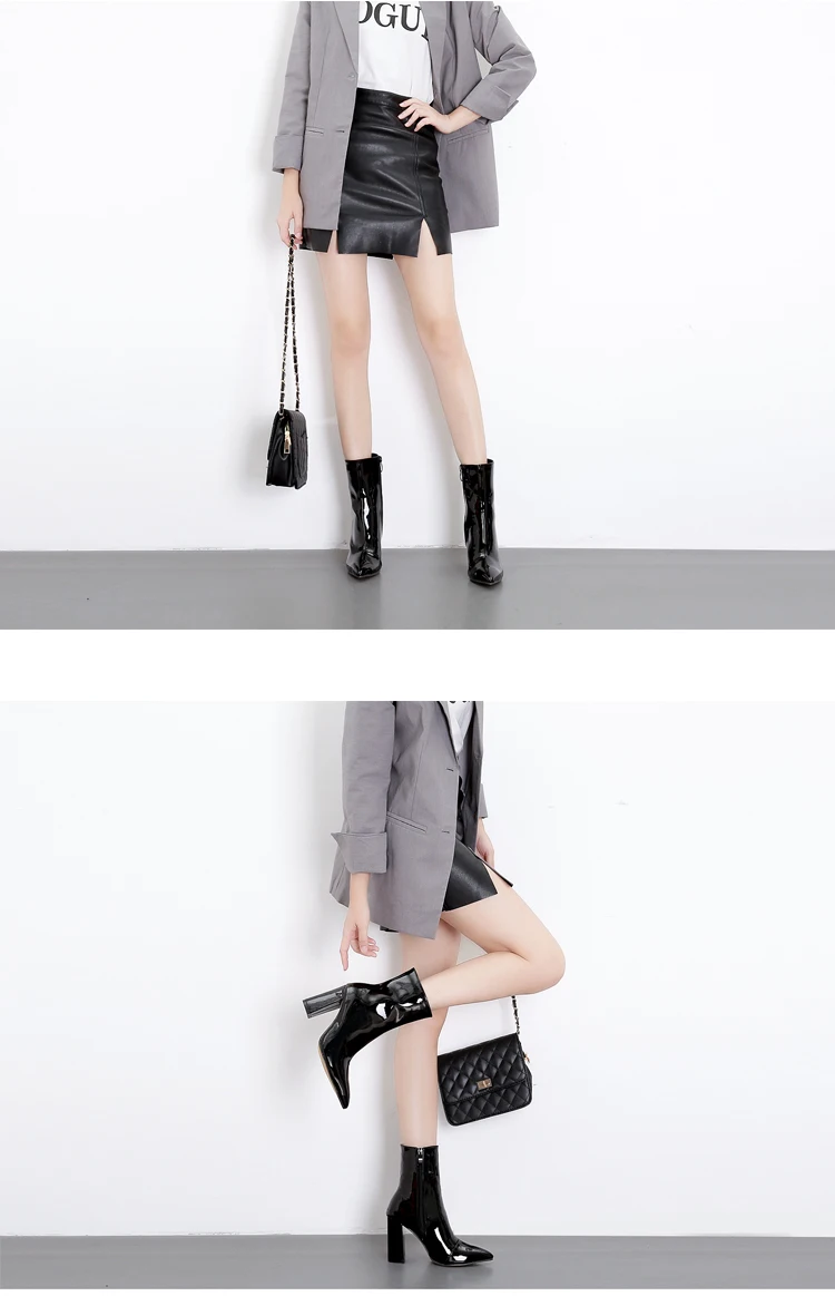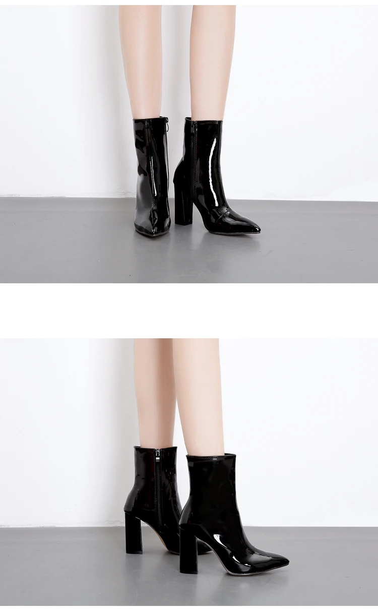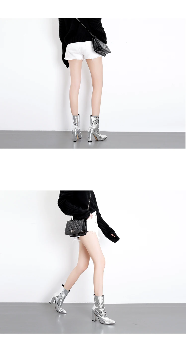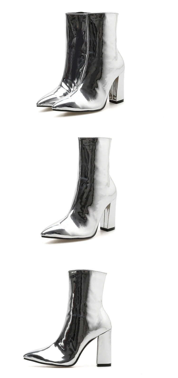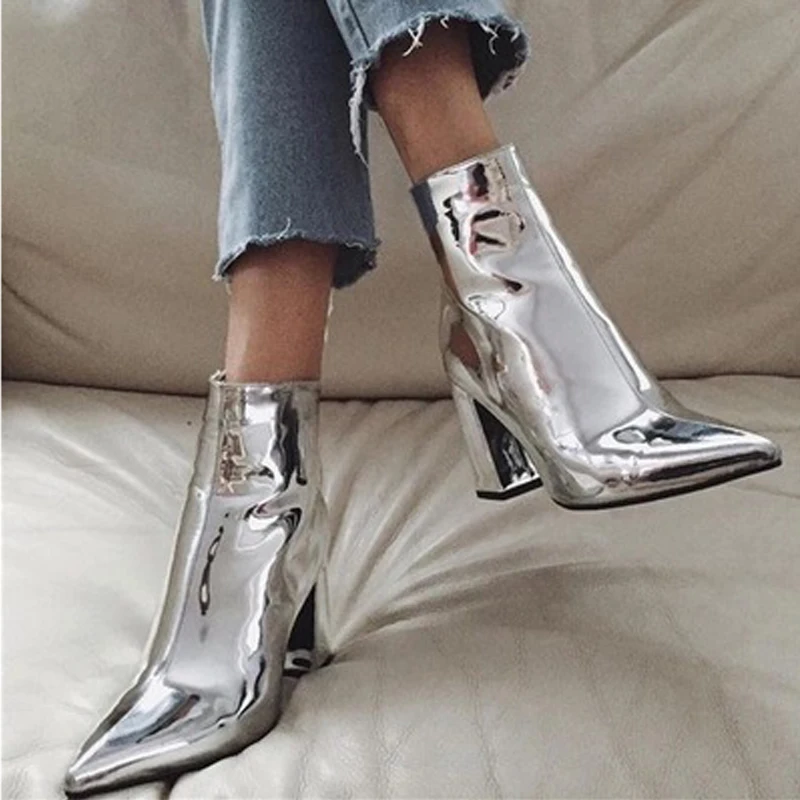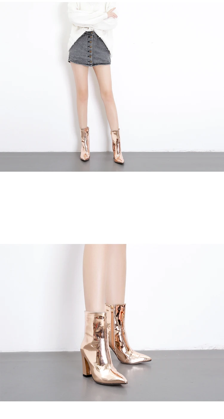 Ботинки женские из лакированной кожи, золотистые, серебристые, осенне-зимние, на высоком каблуке