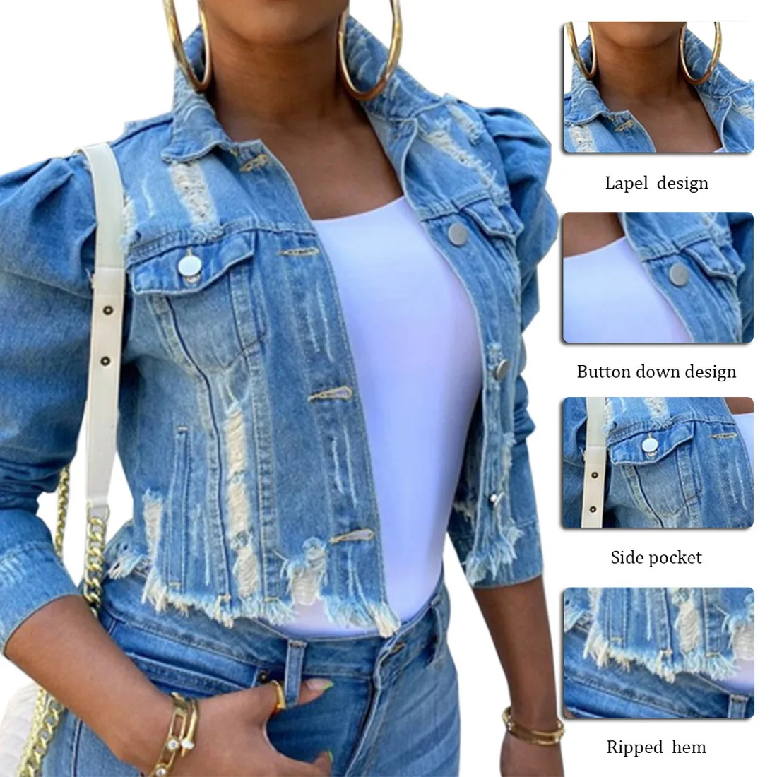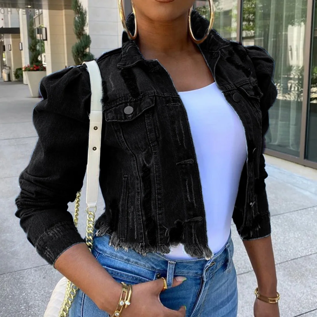 Женская джинсовая куртка LASPERAL, винтажная повседневная короткая джинсовая куртка размера плюс с рукавами-фонариками
