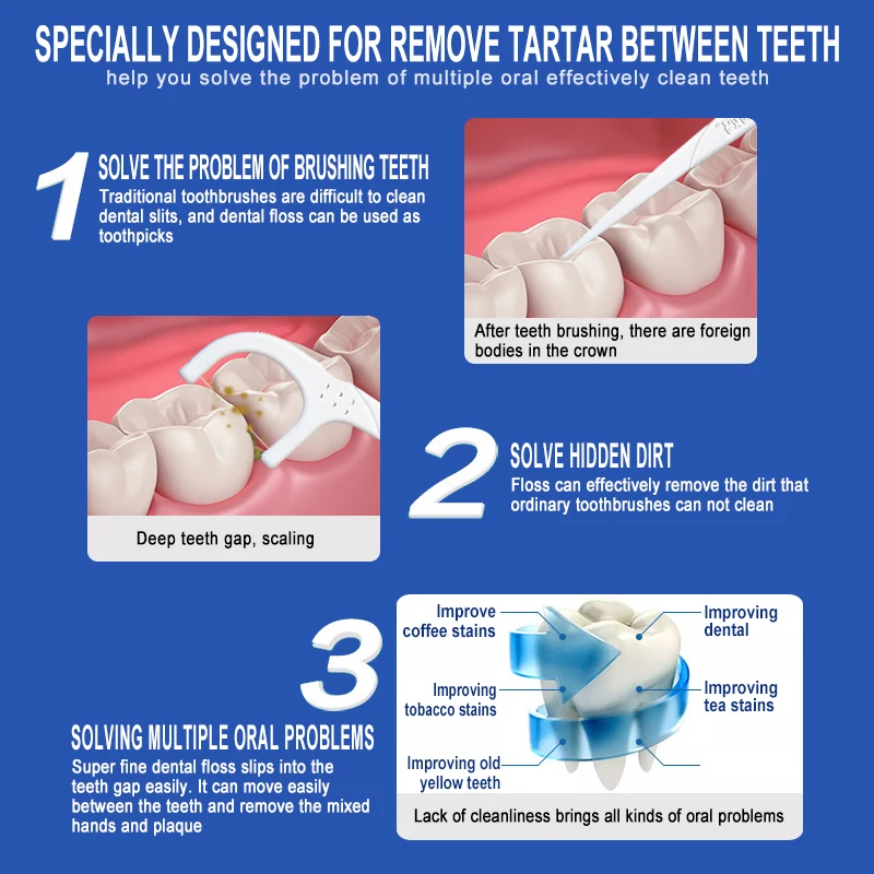 -Функционально удалите язвы и мусор там, где обычные зубные щетки не могут достичь, легко скользит между зубами.