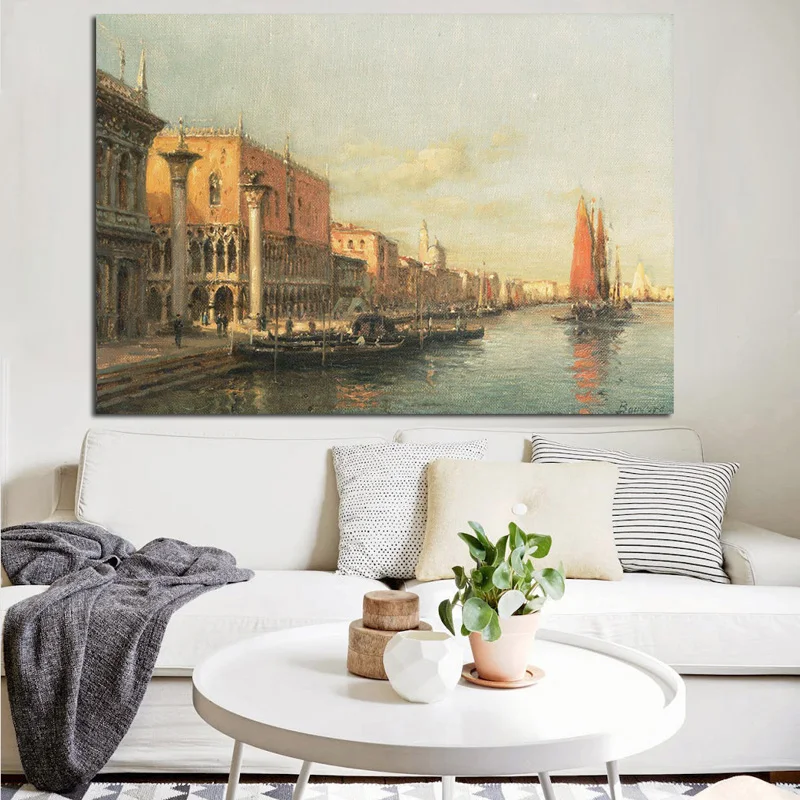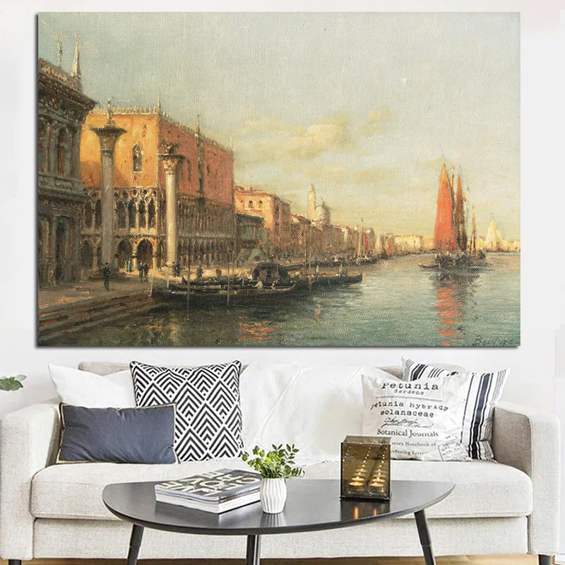 Винтажная картина маслом на холсте, морской пейзаж Венеции