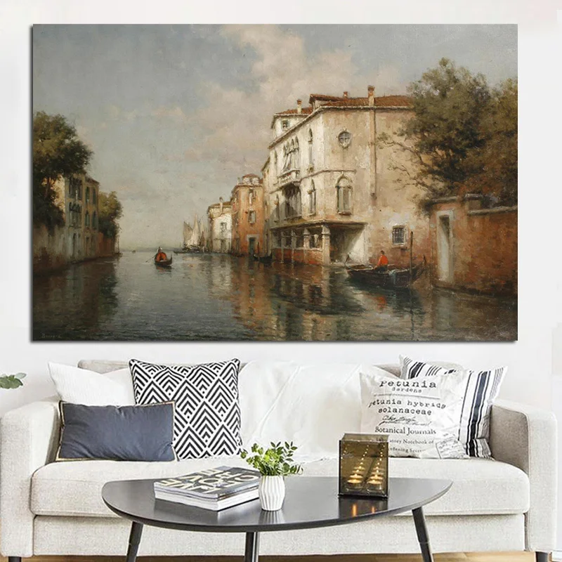 Морской пейзаж, винтажный городок, Венеция, картина маслом на холст...