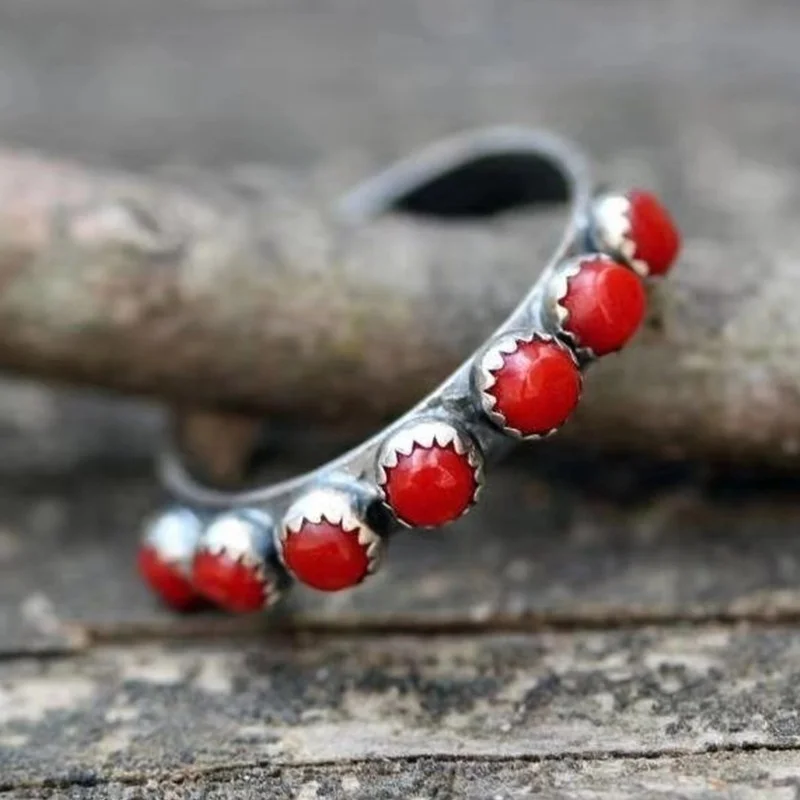 Кольцо, восстанавливающее старинные путь, Женское кольцо в этическом стиле с синим и красным драгоценным камнем, модное вечерние ЦО с бусинами для девушек