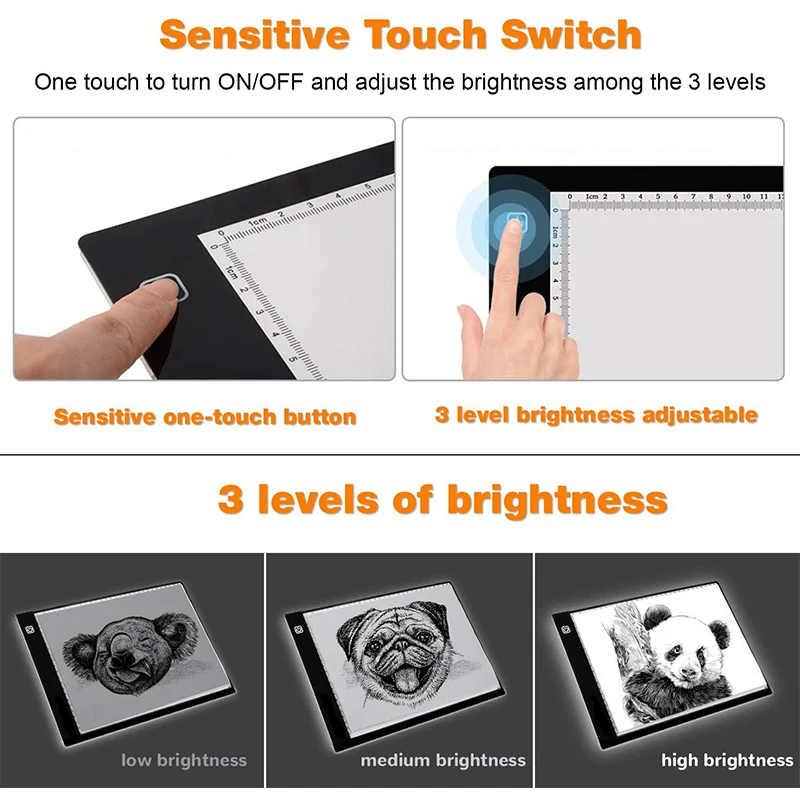 Спецификация: Материал: акрил Тип: А4 Рабочее напряжение: 5В 1а Номинальная мощность: A4: 4,12 Вт Особенности: 1. Портативный и весовой светильник: вес, так что его легко носить с собой и без проблем в хранении. 2. Защита глаз во время отслеживания: Возьмите без мерцания супер яркий экологически чистый светодиод, равномерный и стабильный светильник позволит вам чувствовать себя комфортно во время процесса отслеживания. Светильник-направляющая пластина фильтрует вредные лучи и защищает ваши глаза, не суровый светильник, без проблем в течение длительного времени работы. 3. Питание USB ed: поставляется с usb-кабелем, светильник для отслеживания легко включается, Подключаясь к источнику питания, компьютеру или любому usb-порту на розетке. 4. Широкое применение: светильник-идеальный инструмент для набросков, рисования, 2D анимации, каллиграфии, тиснения, скрапбукинга, переноса татуировок, шитья, независимо от профессионалов или любителей. Это также сказочный подарок для художников, дизайнеров и фотографов. Посылка включает в себя: 1 * светодиодный светильник 1 * USB кабель