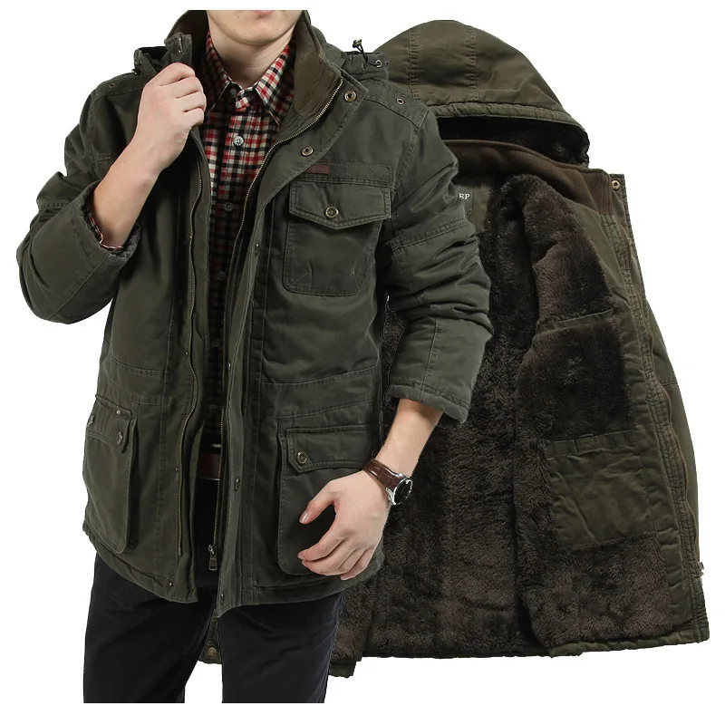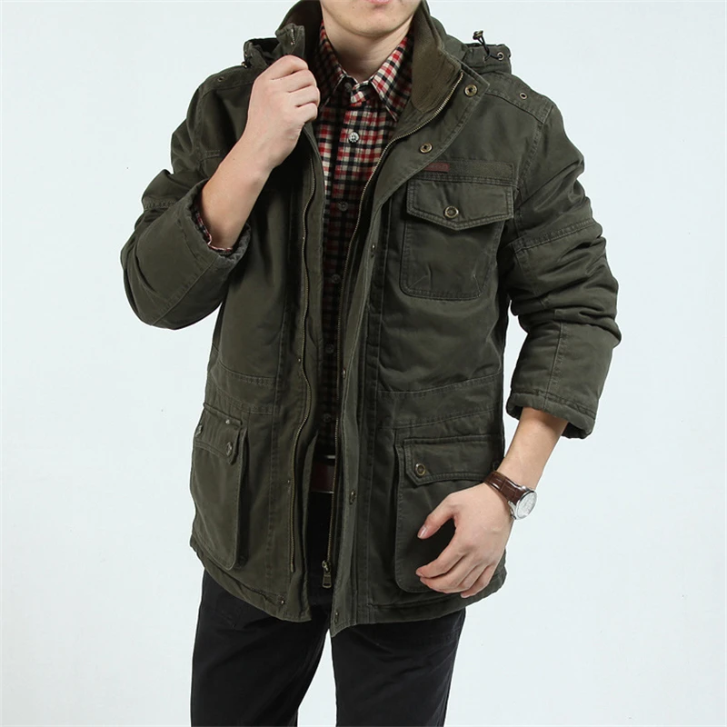 Брендовая Толстая теплая зимняя парка, пальто, военная флисовая куртка для мужчин размера плюс 5XL с несколькими карманами, хлопковая стеганая ветровка с капюшоном