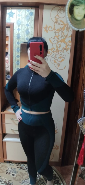 Костюм пришел за месяц и это, наверное, лучшее что приходило с Али за мою жизнь. Он идеальный!!!Пришло все в отдельных пакетиках. Ткань мягкая с узором. Мои параметры 174 88/68/98 взяла ррМ из-за роста. Кофта впритык, топ и лосины, мне кажется, можно было и S взять. Но и так хорошо. Спасибо большое!!!