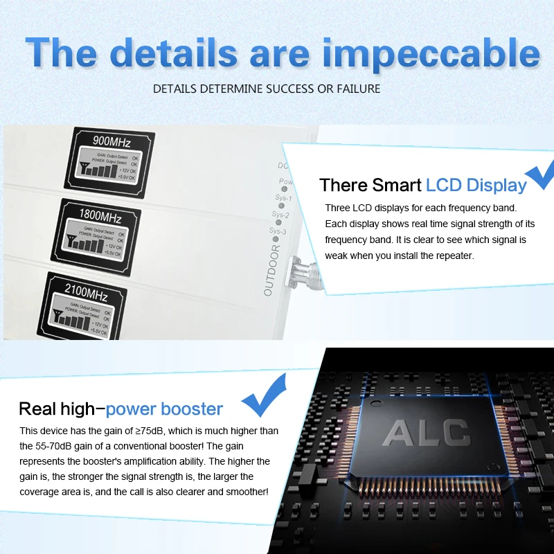 Реальный Автоматический Контроль усиления.Функция AGC может автоматически изменять выходную мощность в соответствии с силой наружного сигнала. Не беспокойтесь о том, что усилитель сигнала создает помехи в сигнальную башню.