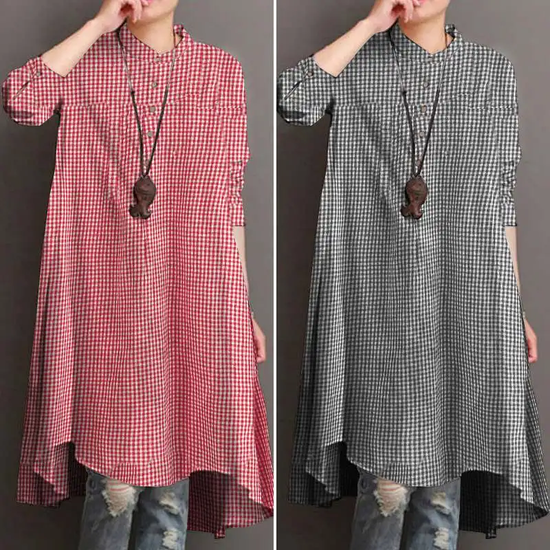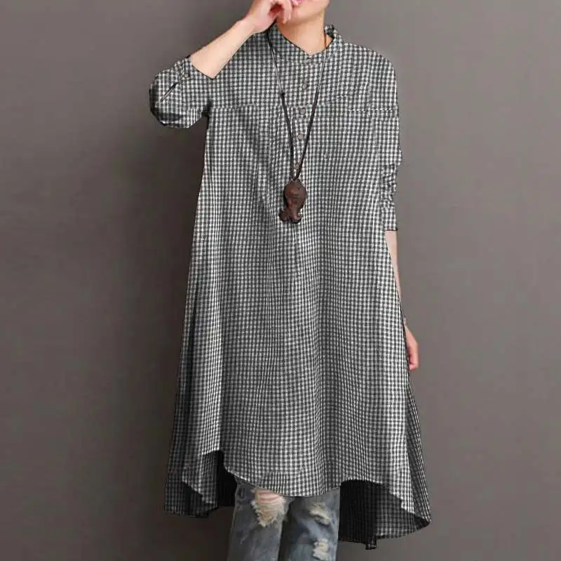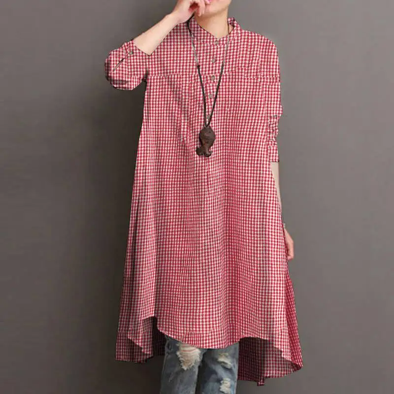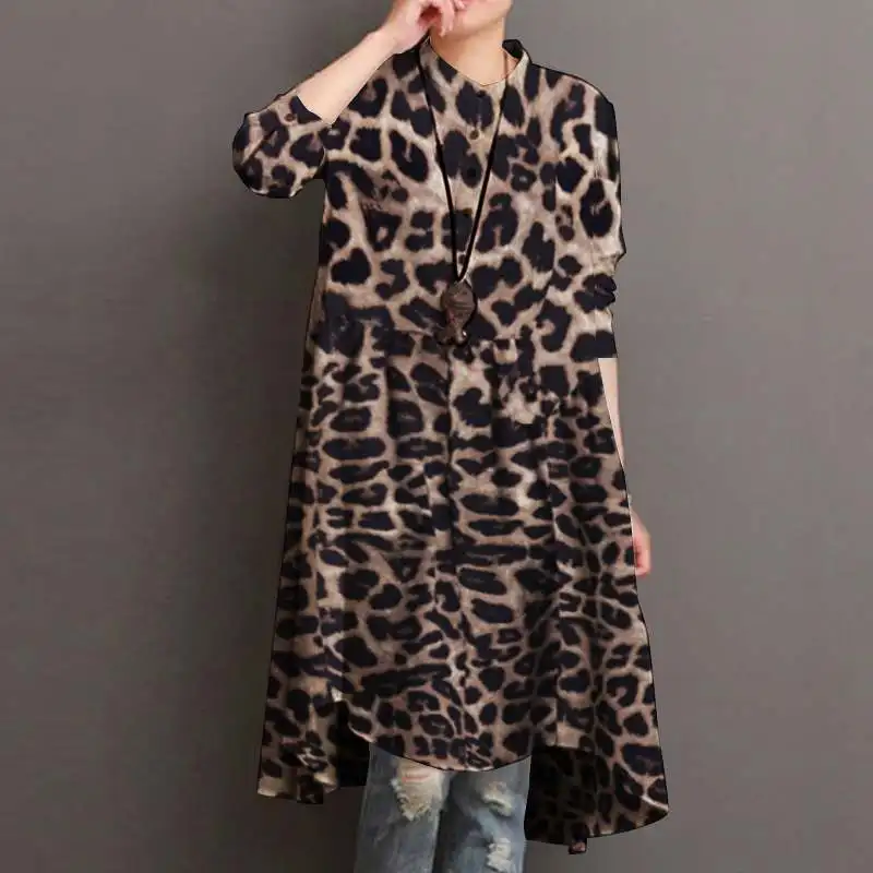 Рубашка ZANZEA женская повседневная с леопардовым принтом, винтажная клетчатая Длинная блузка с длинным рукавом, осень 2021