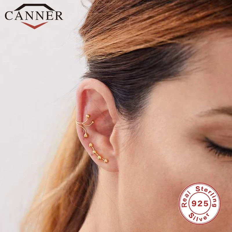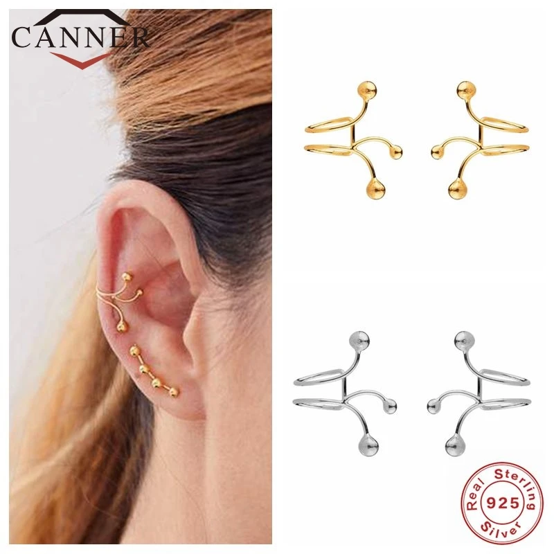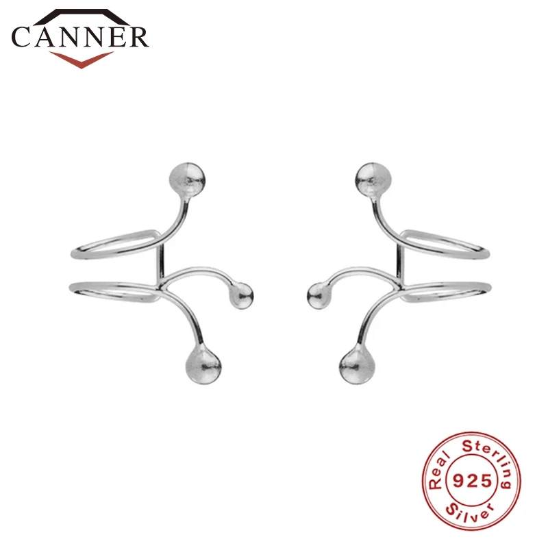 CANNER настоящая 925 пробы Серебряная Ушная манжета Клипсы Серьги Персонализированные резьбовые шарики без отверстия клипсы для ушей без пирсинга ювелирные изделия