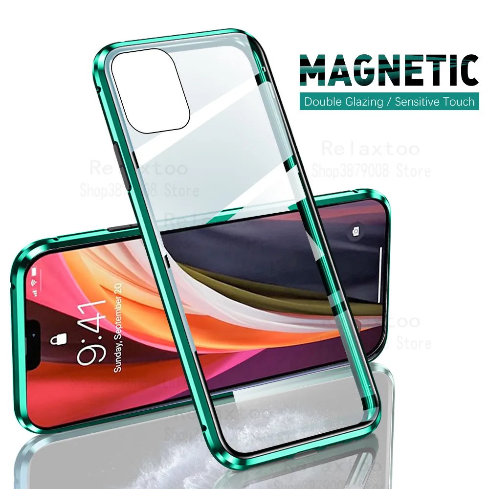 Двухсторонний Магнитный чехол для iPhone 12 Pro Max XR XS MAX 11 8 ...