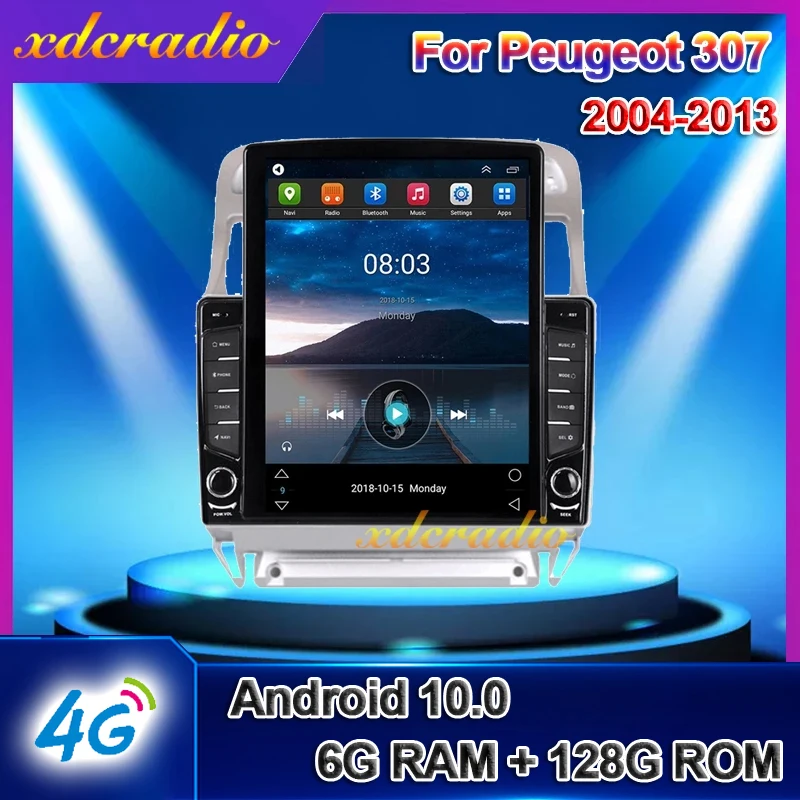Автомобильное радио Xdcradio 10,4 дюйма, Android 10, в стиле Tesla, с вертикальным экраном, для Peugeot 307, мультимедийный плеер, Автомобильная GPS-навигация, 2015-2019 гг.