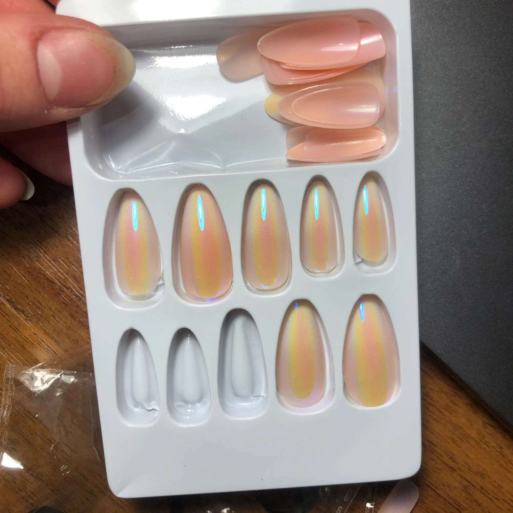 Замечательное качество. Выглядят, как настоящие ногти, никто из моего окружения даже подумать не мог, что это накладные. На фото не так видно, но они невероятно красиво переливаются. Дошли быстро. клей фантастический – держатся ногти неделями, с учётом душа, процедур гигиены рук, горячих ванн. Конечно, зависит от того, что вы делаете с таким маникюром, но стоит уточнить, что абсолютно любой маникюр стоит беречь.