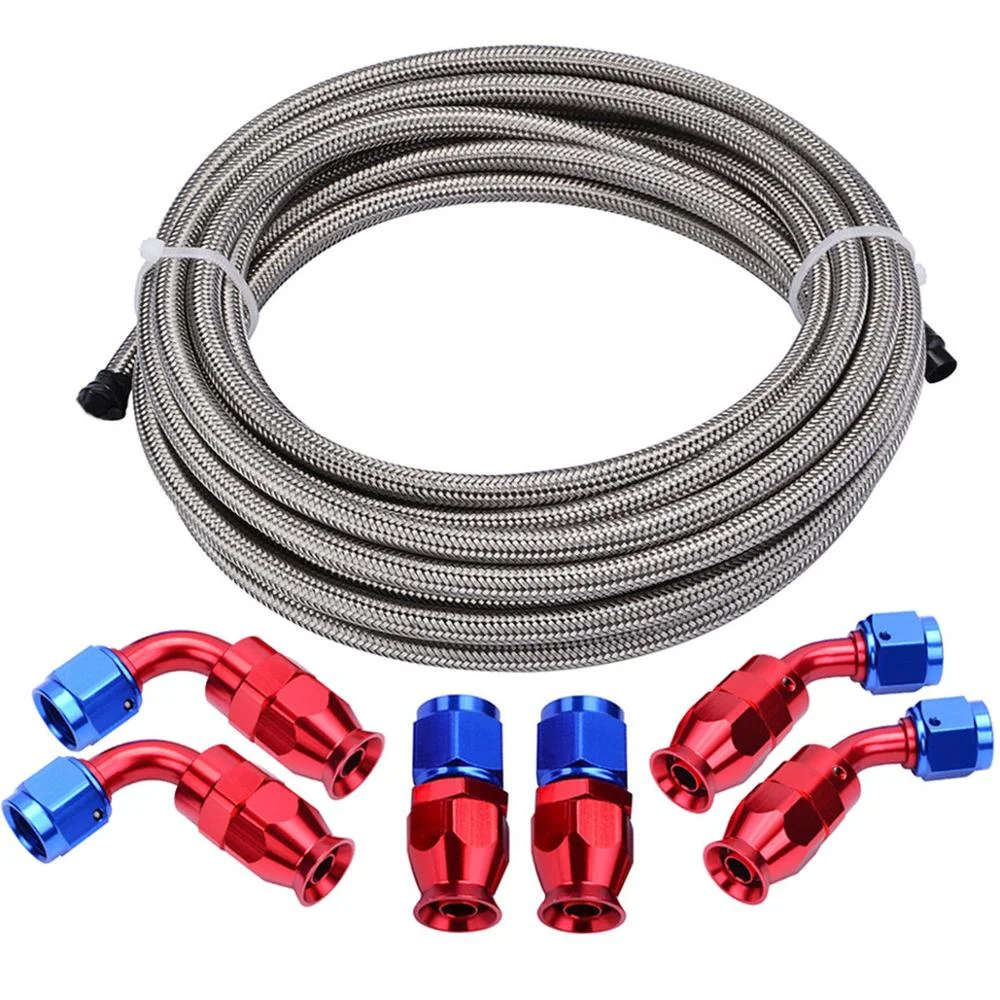 3,65 метров/10 футов оплетка из нержавеющей сталиПТФЭТопливный шланг 2 шт прямой многоразовый штуцер для топливного шланга из ПТФЭ Red_Blue 2 штуки 45 градусов многоразовый штуцер для топливного шланга из ПТФЭ красный _ синий 2 штуки 90-градусный многоразовый штуцер для топливного шланга из ПТФЭ Red_BlueПрименение: