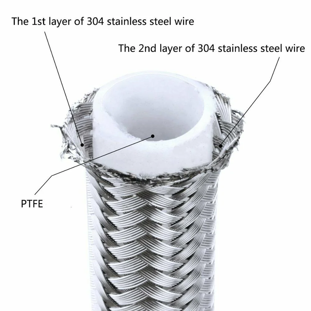 Топливо, смазка, спирт, этанол, охлаждающая жидкость и воздух для автомобилей или морских двигателей, больше всего подходит для гоночных автомобилей и гоночных мотоциклов. Этот Плетеный Топливный Шланг из нержавеющей стали специально разработан для работы в любом автомобильном проекте. Этот шланг обеспечивает непревзойденные уровни производительности и надежности для ваших жестких приложений. Этот шланг идеально подходит для высоких температур, высокого давления и обеспечивает широкий диапазон совместимости с жидкостью. Этот шланг изготовлен из высококачественного полиуретана с внутренней стороны, что обеспечивает высокую химическую и термостойкость, а также оплетку из нержавеющей стали снаружи, что придает им высокую прочность, экстремальную устойчивость к давлению, И профессиональный и высокотехнологичный внешний вид. Они имеют гладкое отверстие для оптимального расхода. Полиуретан гибкий и прочный и в сочетании с оплеткой из нержавеющей стали может работать под высоким давлением и непрерывными условиями изгиба и вибрации.