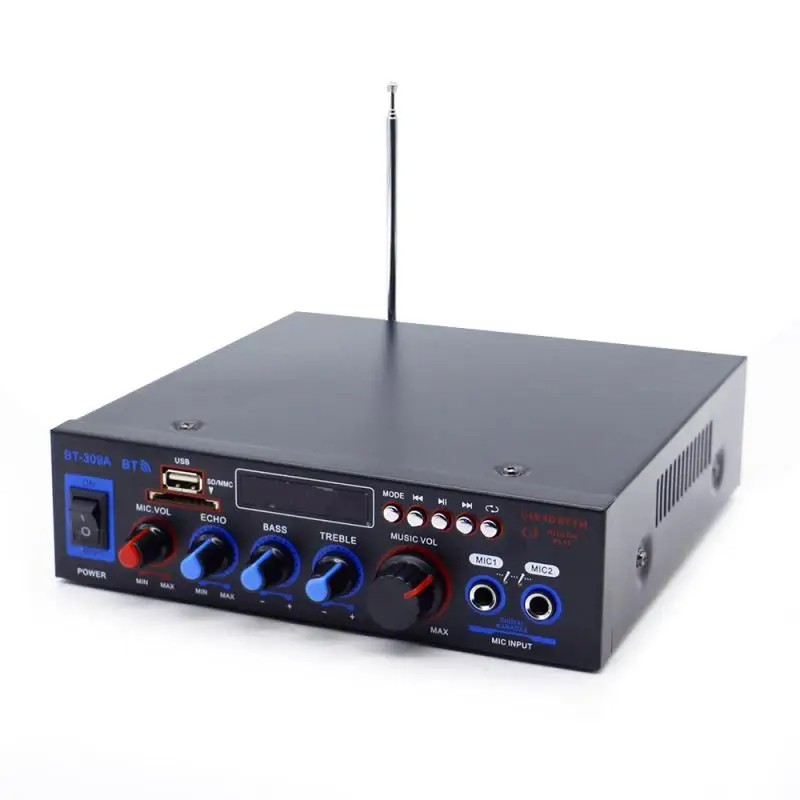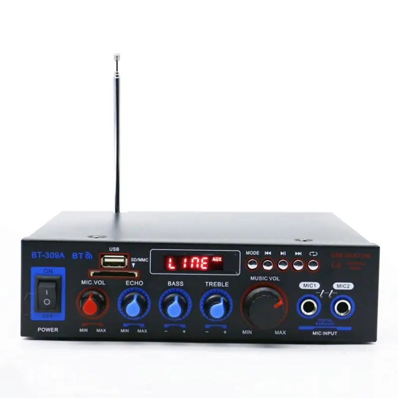 Усилитель звука BT309A, 12 В220 В, 2 канала, Hi-Fi, ЖК-дисплей, стерео, усилитель мощности, Bluetooth, радио, для автомобиля, мотоцикла, дома, супер громкий динамик