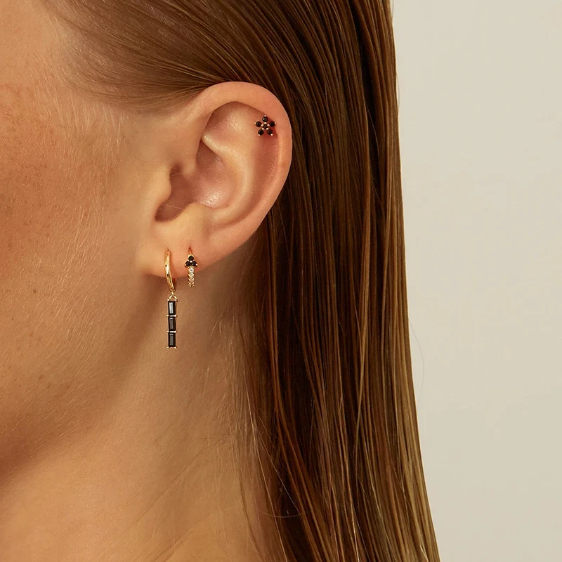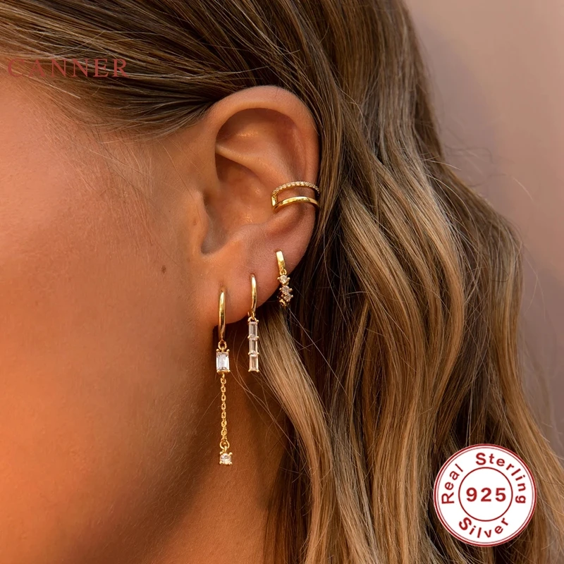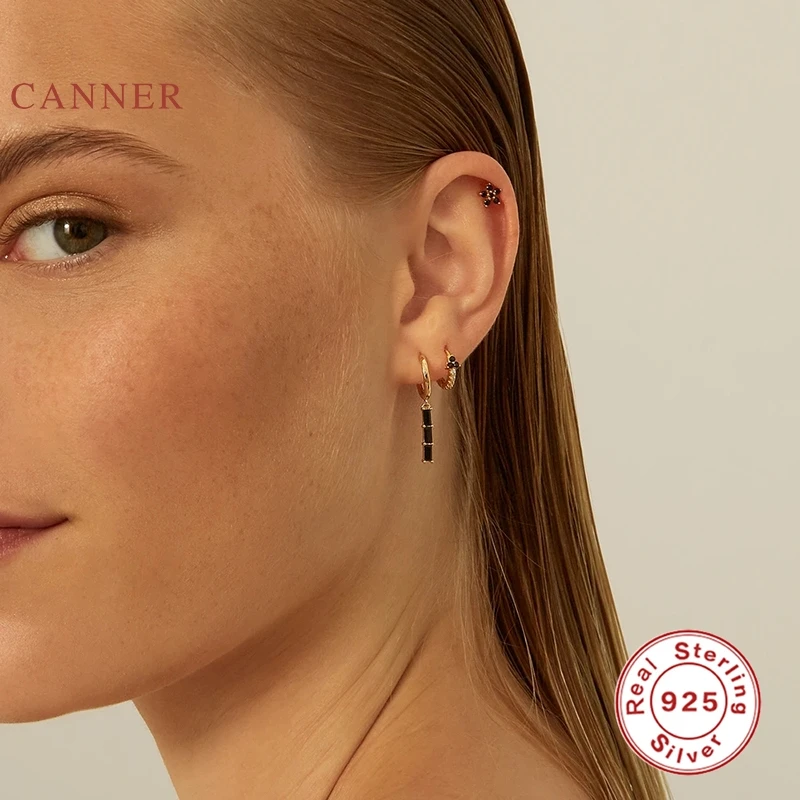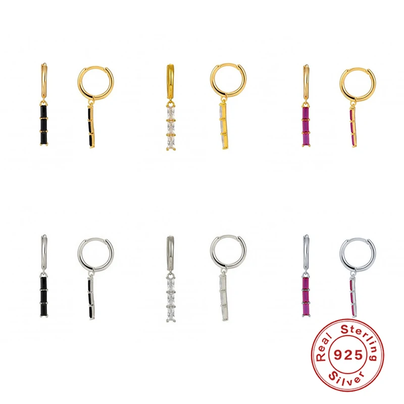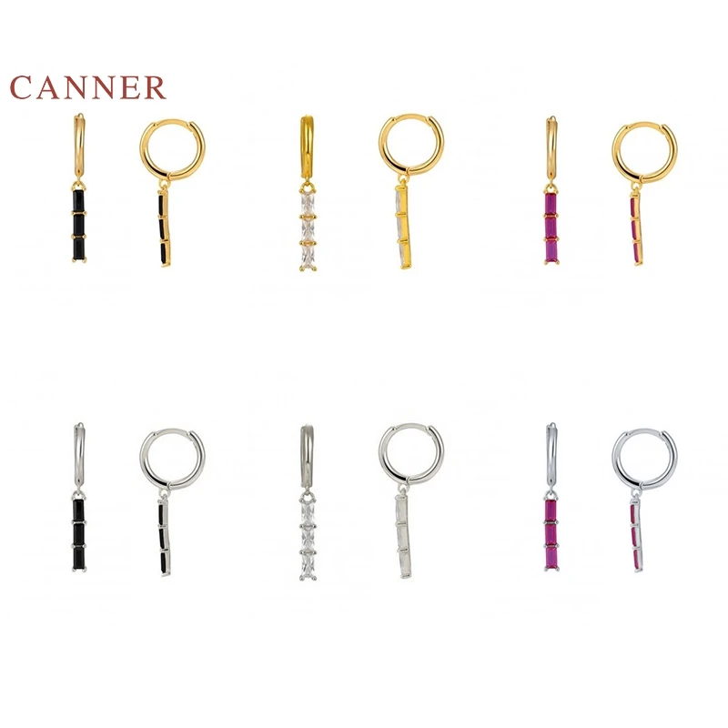 Женские прямоугольные серьги CANNER из настоящего серебра 925 пробы, обручи, черный/белый/фиолетовый красный бриллиант, корейские ювелирные изделия