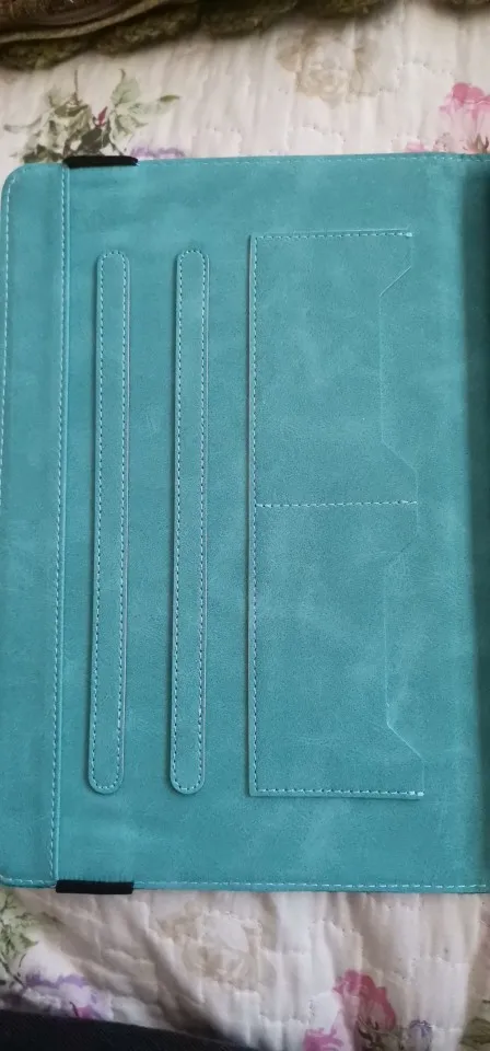 Чехол полностью соответствует описанию. Очень насыщенный красивый бирюзовый цвет. К планшету подошёл идеально. Качественная отстрочка по периметру. Внутренний держатель пластиковый. В качестве бонуса - стилус. На внутренней стороне крышки - широкая резинка для фиксации и два кармашка для визиток. Доставка 3 недели до Москвы. Покупкой осталась довольна на 100 процентов! Спасибо продавцу. С продавцом не общалась.