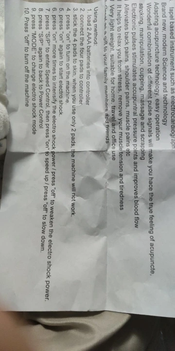 Получила массажёр, думаю что хорошо будет работать. В начале не могла включить, а потом поняла, так как инструкции на другом языке.