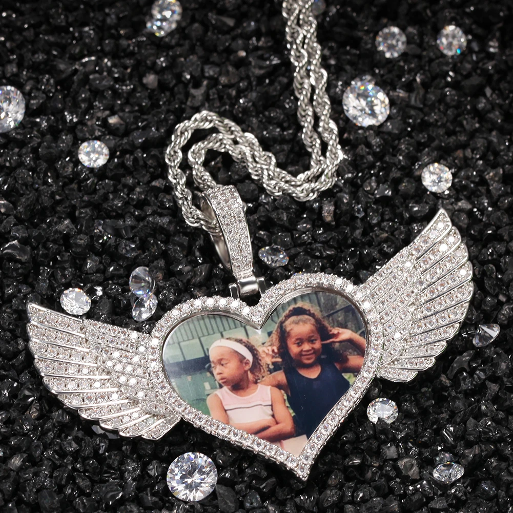 Uwin обычай ожерелье с фото сердце с крыльями Мужчины Шарм хип-хоп Bling Iced Out ювелирные изделия для подарка теннисная цепь