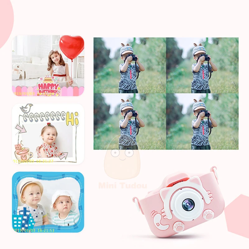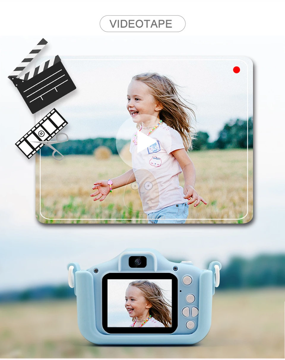 1. Эта детская камера имеет две камеры, фронтальную и заднюю, оба HD, это будет записывать более замечательный момент для ваших детей. 2. Эта камера поддерживает до 32 ГБ micro SD карты.