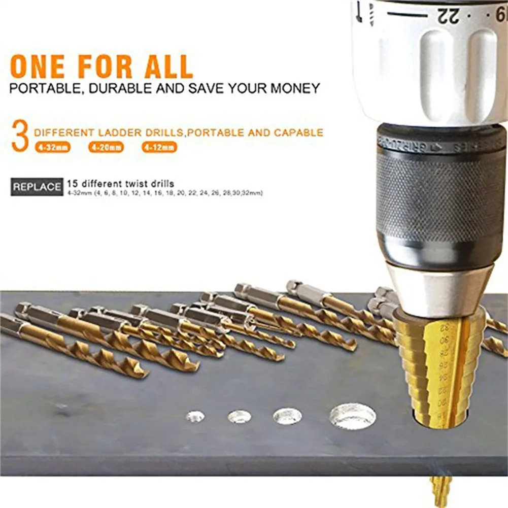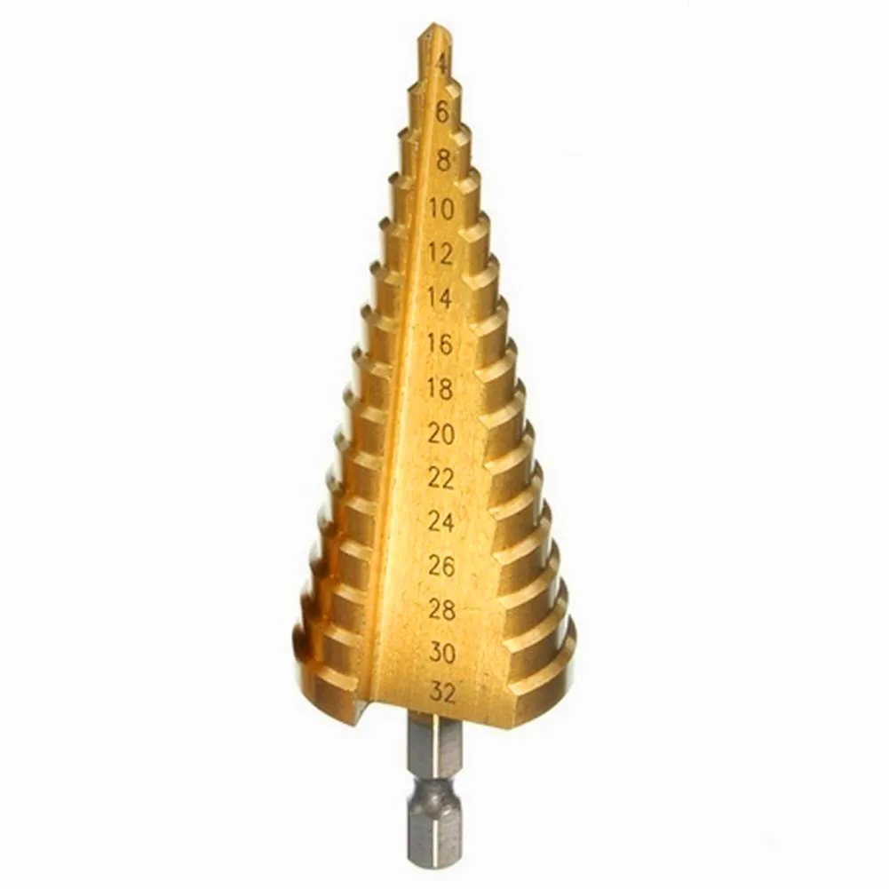Набор ступенчатых Сверл из быстрорежущей стали с коническим отверстием, конический, метрический, 4 - 12 20 32 мм, 1 4 дюйма, металлическое шестигранное сверло с титановым покрытием
