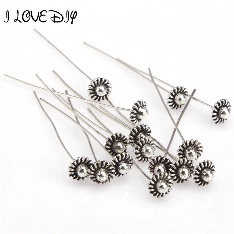Более детальные и эффектные фотографии20 шт. 50 мм серебристый цветок под старину шпильки для самостоятельного изготовления ювелирных изделий бусины шариковые шпильки иглы фурнитура женские ювелирные изделия аксессуары