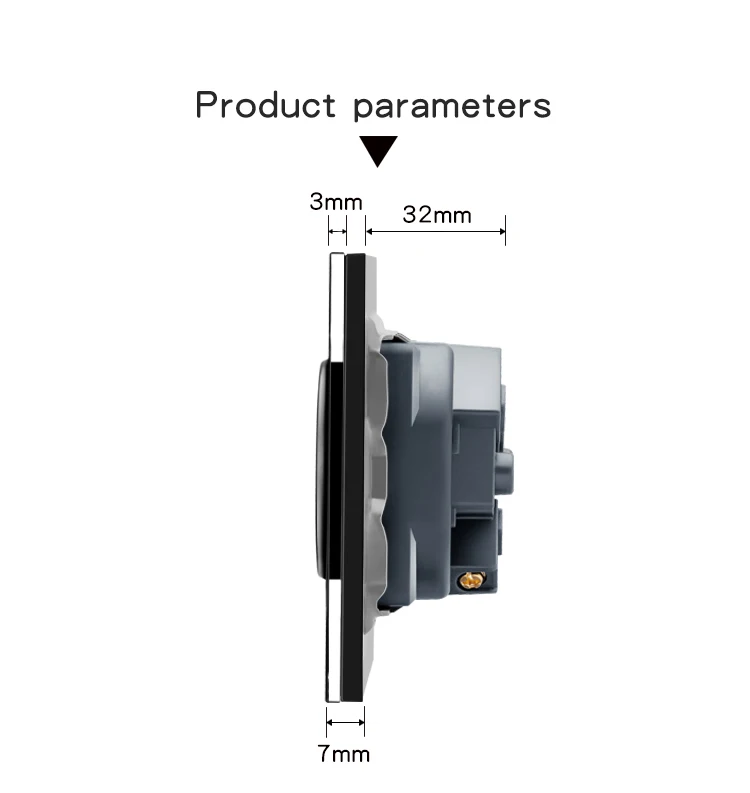 1. С 1 или двойным немецким модулем розетки 2. Номинальное напряжение (ы): 100 ~ 250 В переменного тока/50 ~ 60 Гц3. Номинальный ток: 16A4. Обеспечение заземления: с контактом заземления 5. Степень защиты от электрического удара: с повышенной защитой6. Тип клемм: встроенный тип винтов7. Размер: 86 мм x 86 мм8. Цвет: белый/черный/шампанское золото9. Материал панели: закаленное Хрустальное стекло/Огнестойкий Поликарбонат пластик10. Стандарт розетки: Европейский или немецкий стандарт Schuko