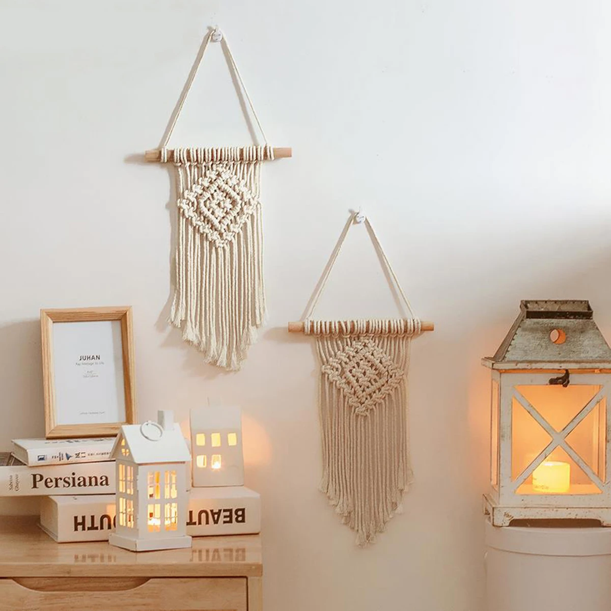 Богемные макраме настенные подвесные, тканые настенные художественные декоративные гобелены для спальни гостиной свадьбыОсобенности:-- Принимает натуральные материалы, придающие минимализм.-- Подходит для украшения интерьера во многих случаях, что может создать удобный контакт для вашей семьи.-- Наш подвесной гобелен также может использоваться для покрытия поврежденной части стены.Спецификация:Материал: хлопковая веревка, деревоСтиль: бохоЦвет: бежевый