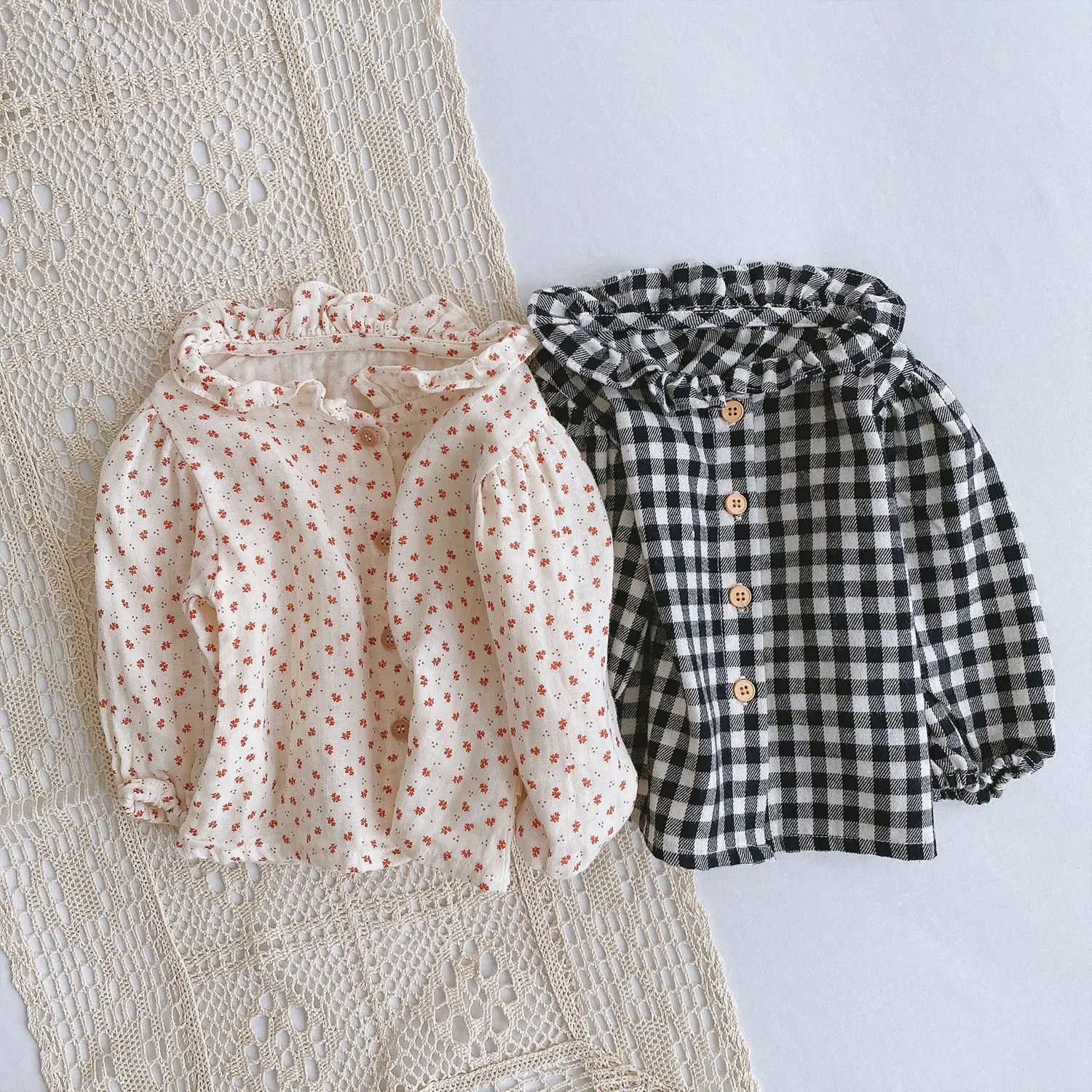 Осень 2022, рубашки из чистого хлопка с длинным рукавом для маленьких девочек, повседневные клетчатые рубашки для маленьких девочек, топы, одежда