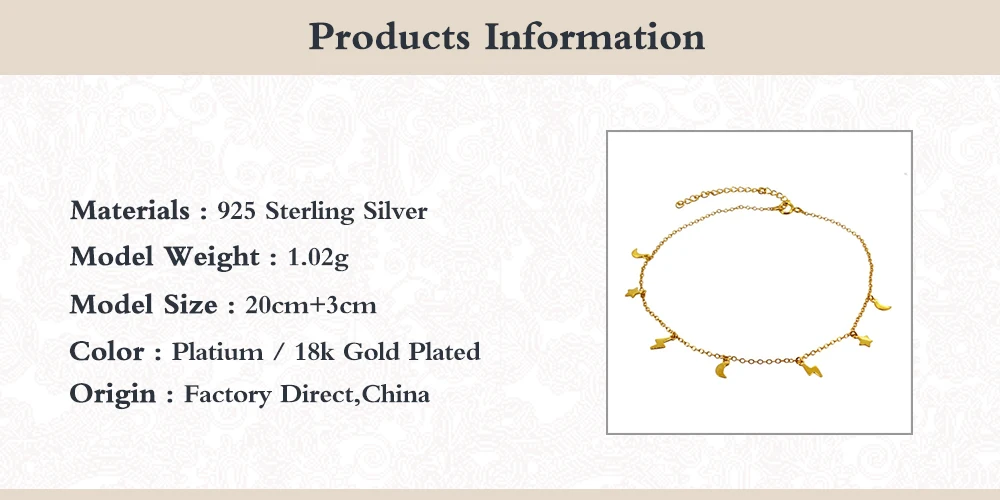 925 Sterling Silver AnkletGold/Silver Color Anklets