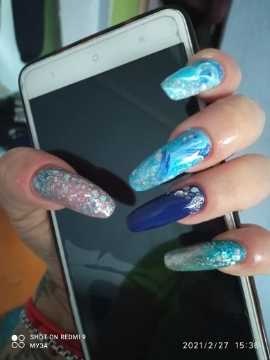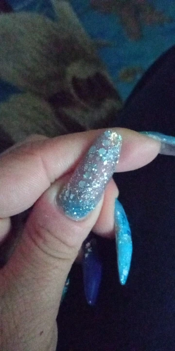 Товар шёл долго почти закончилась защита но цвет супер есть маленькие средние и большие блестки