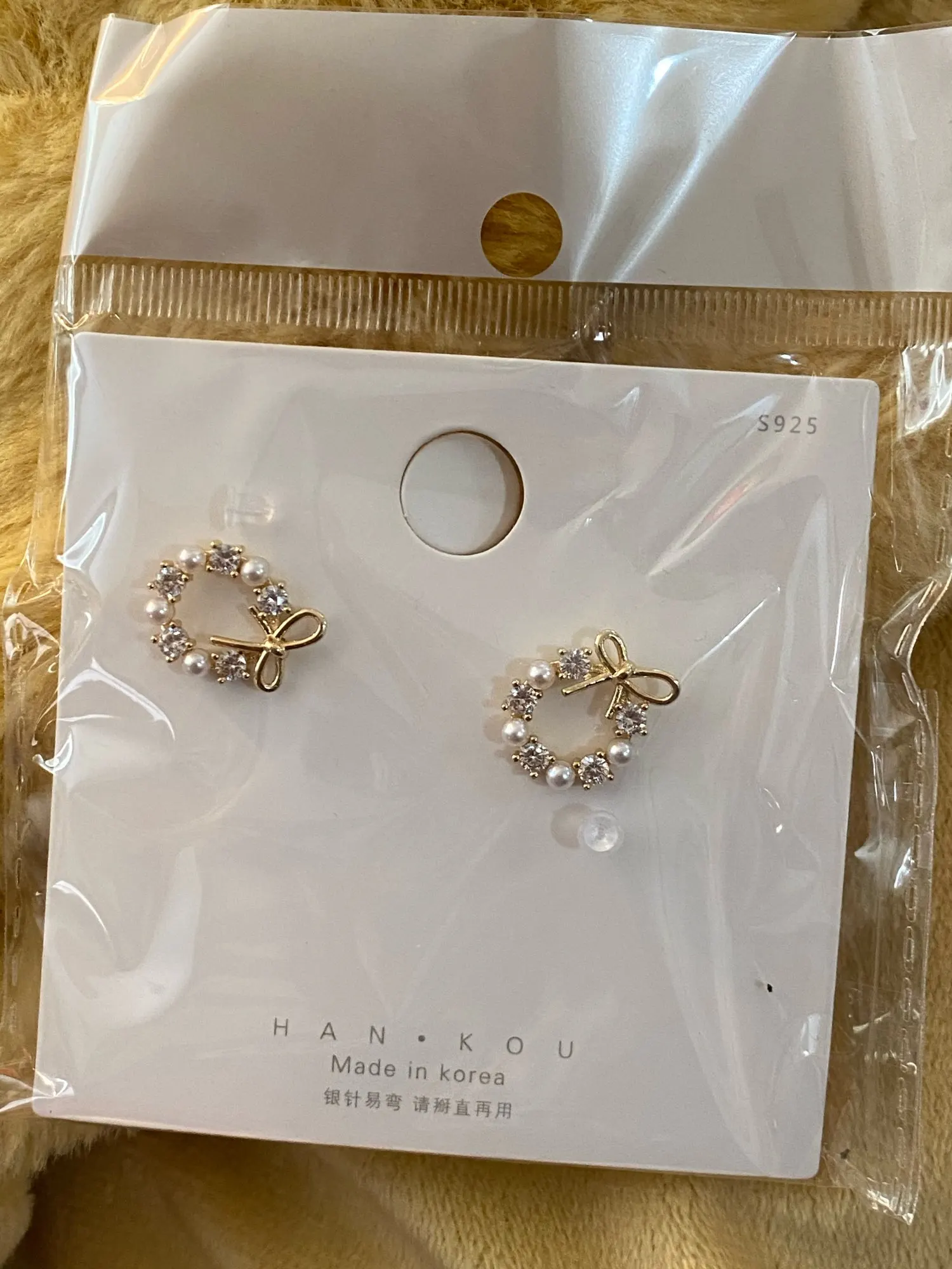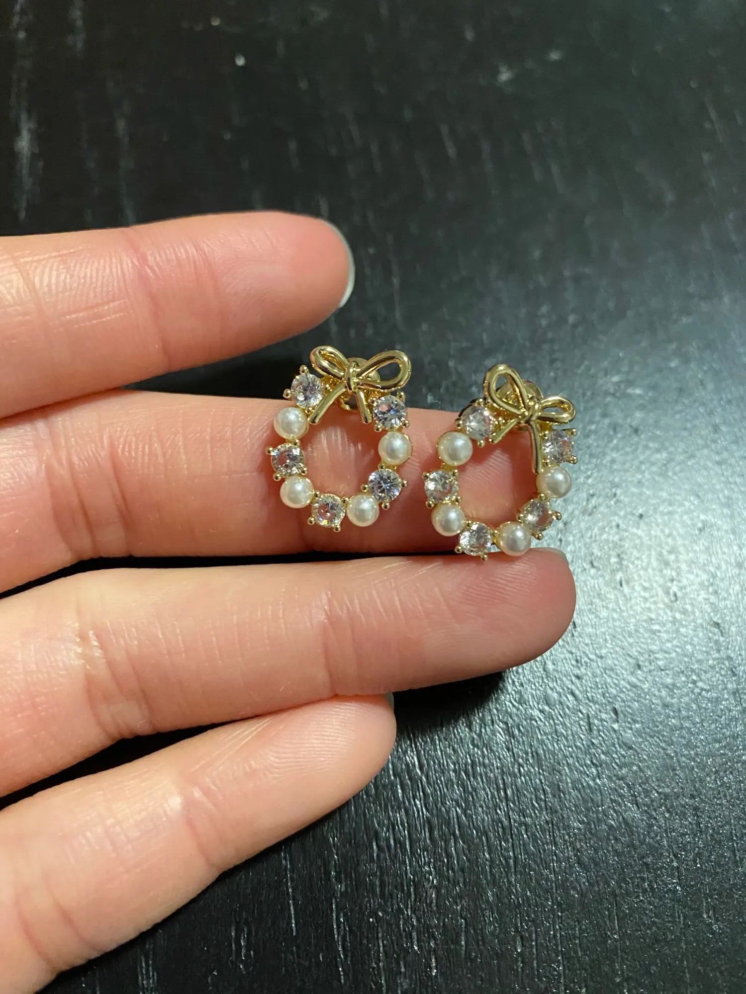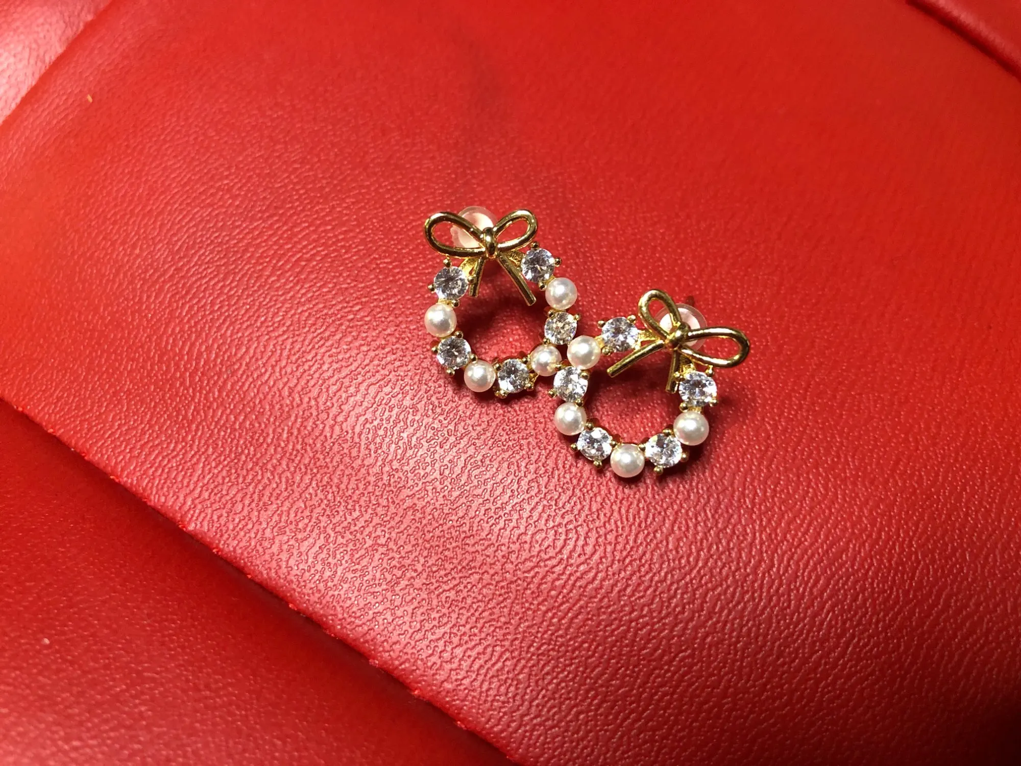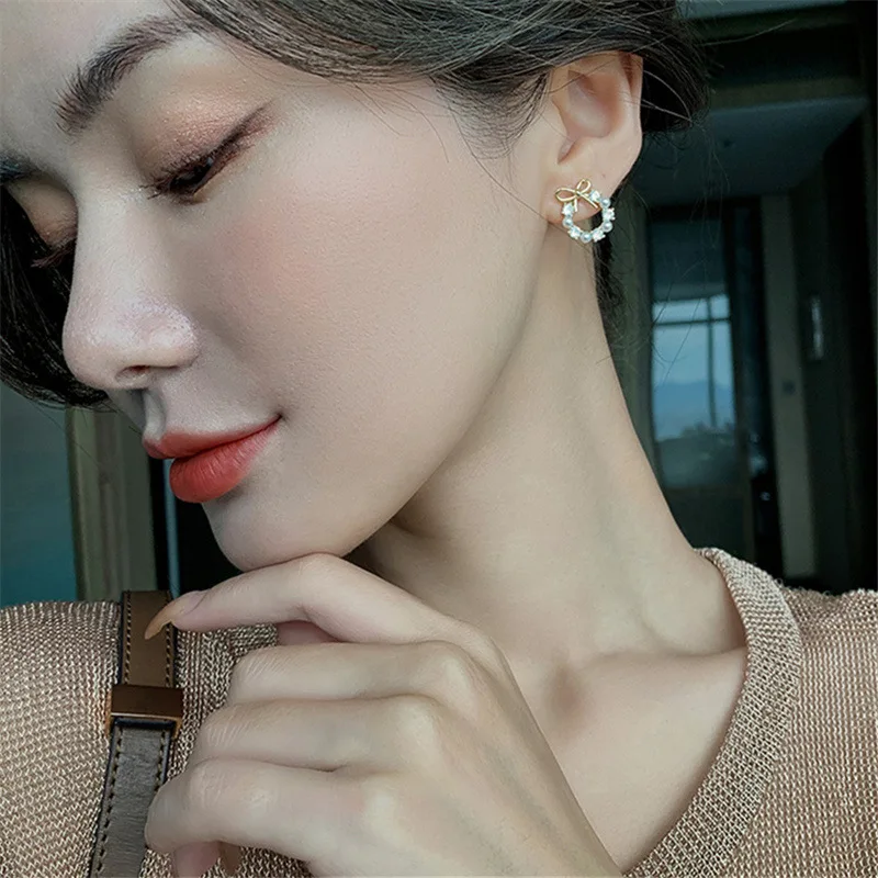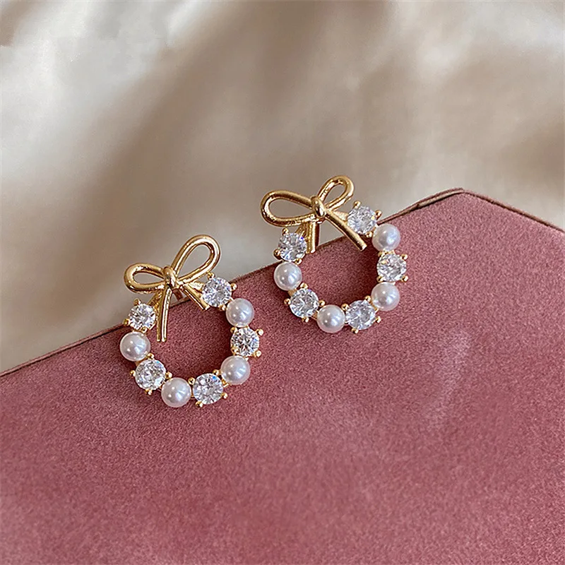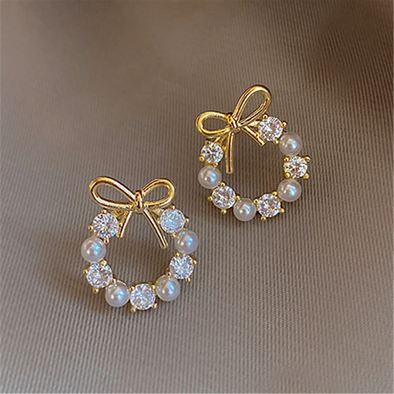 Женские серьги с бантом, элегантные круглые серьги-гвоздики с кристаллами, в Корейском стиле, подарок 2020, ювелирные изделия с искусственным жемчугом