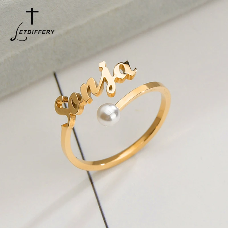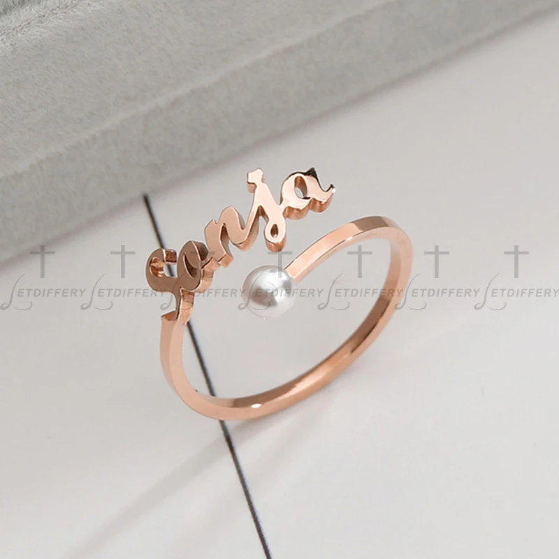 Кольцо с имитацией жемчуга на заказ, Индивидуальные женские обручальные кольца из нержавеющей стали, уникальные обручальные подарки для влюбленных