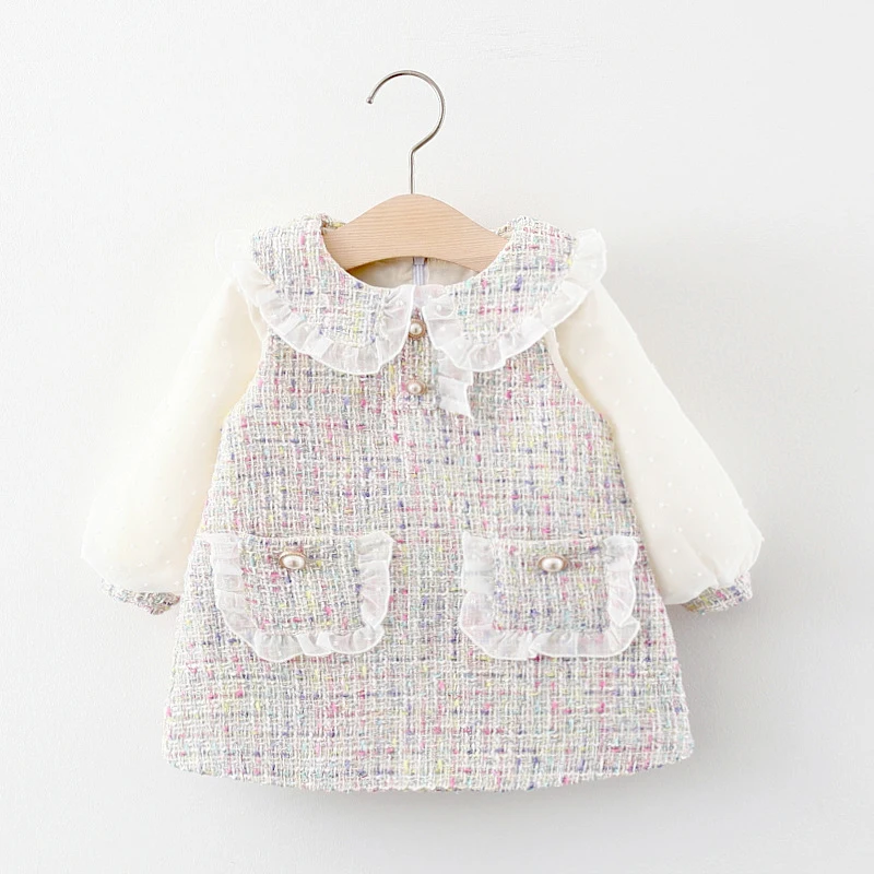 Кружевное платье в клетку с длинными рукавами и гофрированным воротником, что делает вашу девочку похожей на принцессу