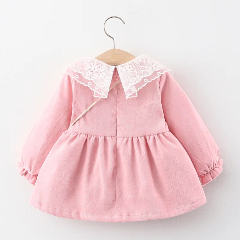 FOCUSNORMОт 0 до 4 лет осеннее платье принцессы для маленьких девочек, 2 предмета, кружевное однотонное платье трапециевидной формы с длинными рукавами и оборками