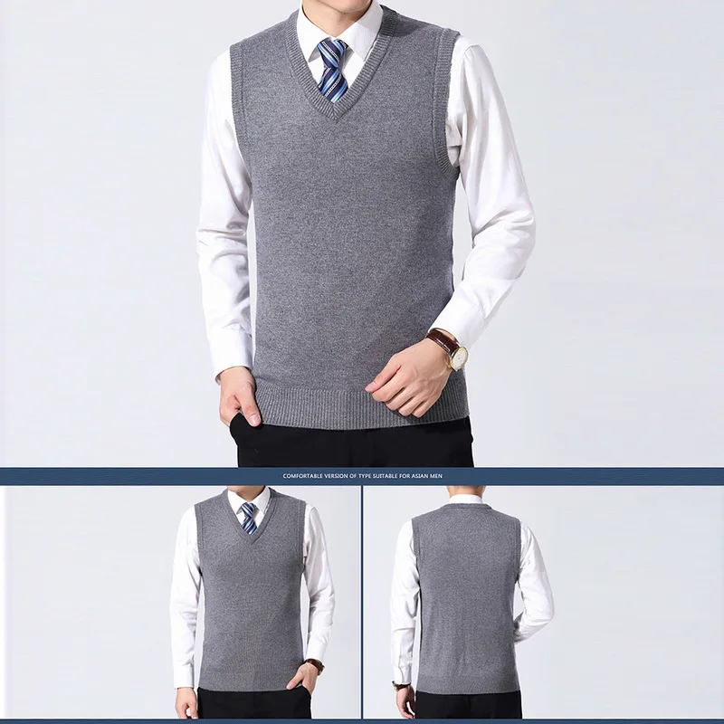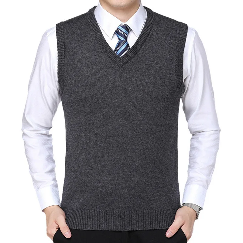 Мужской вязаный свитер, жилет, однотонные кашемировые свитера, пуловер без рукавов, Мужской приталенный Трикотажный жилет с V-образным вырезом