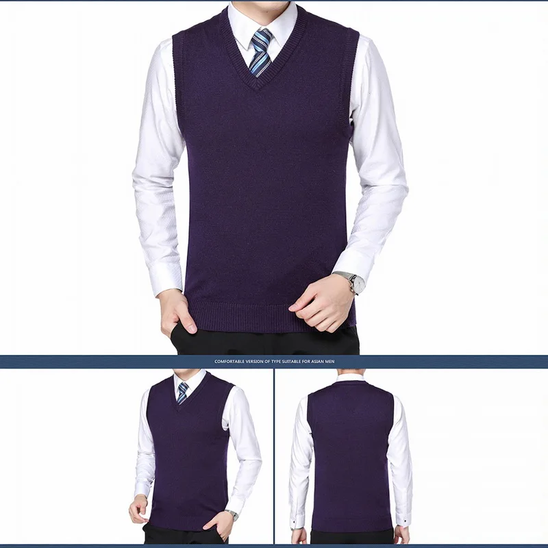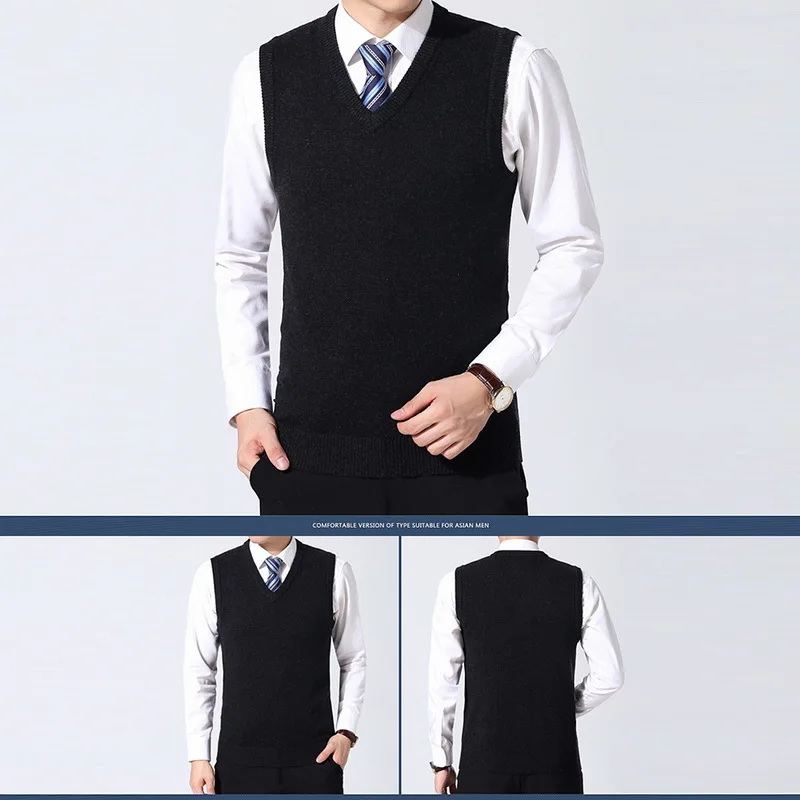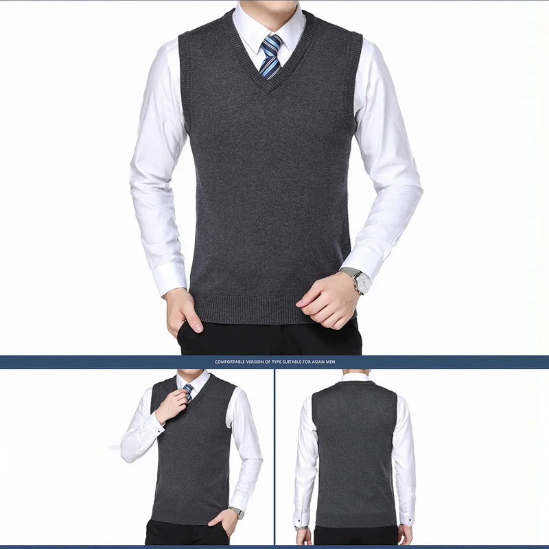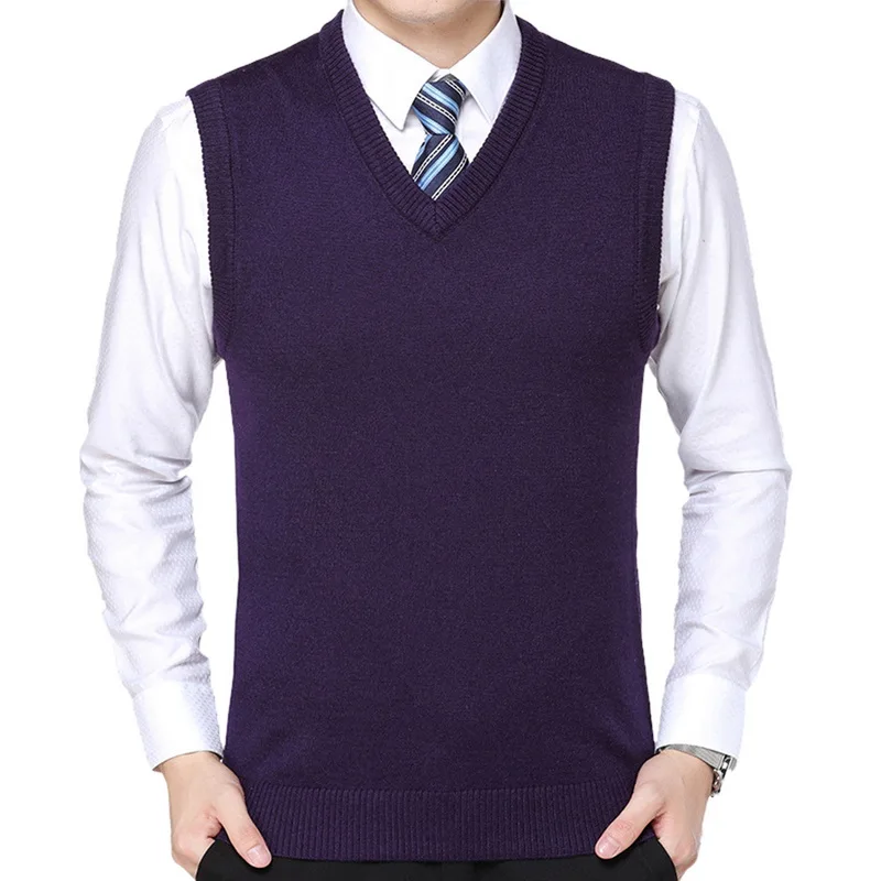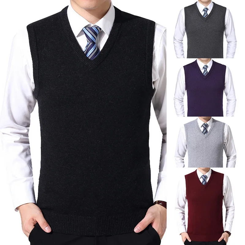 Мужской повседневный зимний однотонный трикотажный шерстяной жилет ...