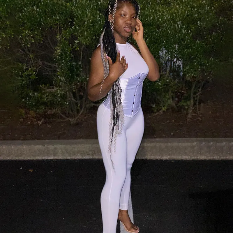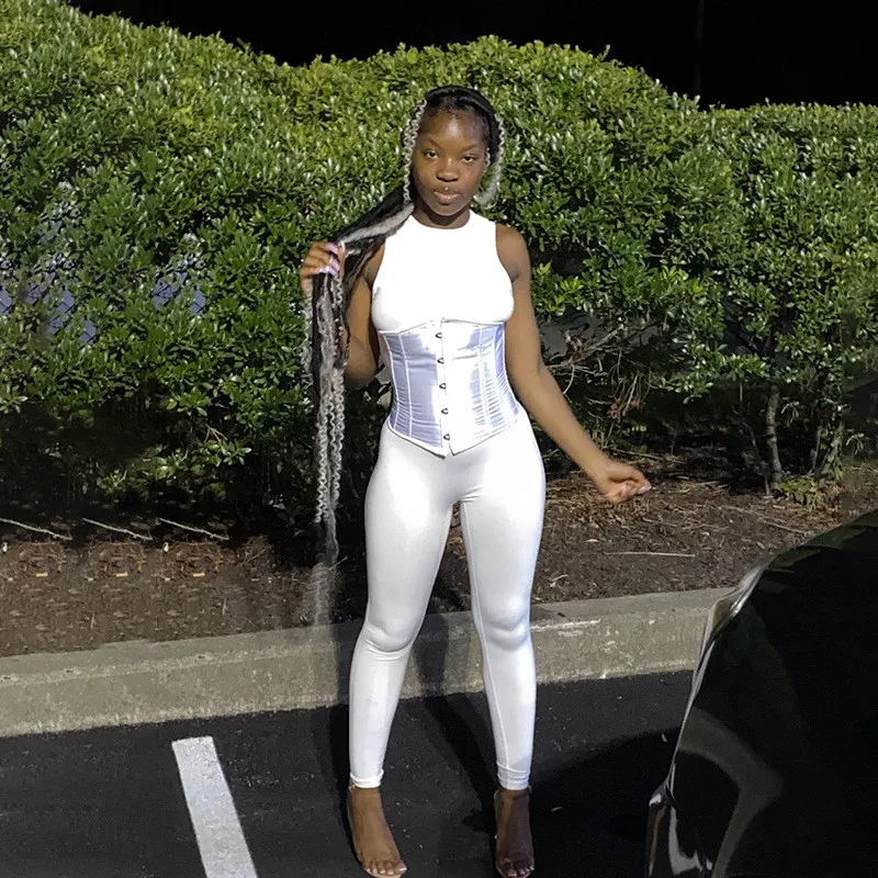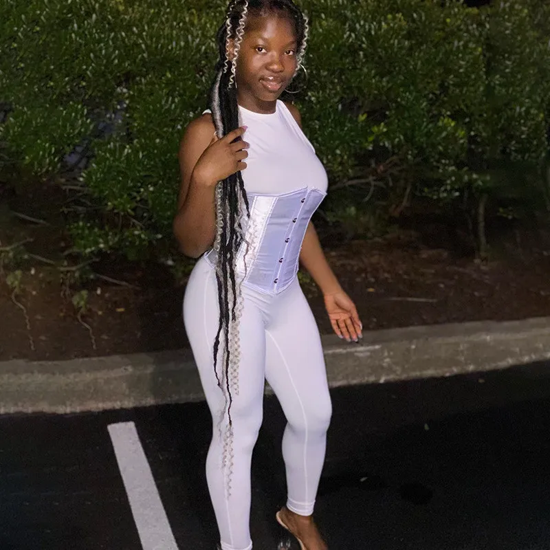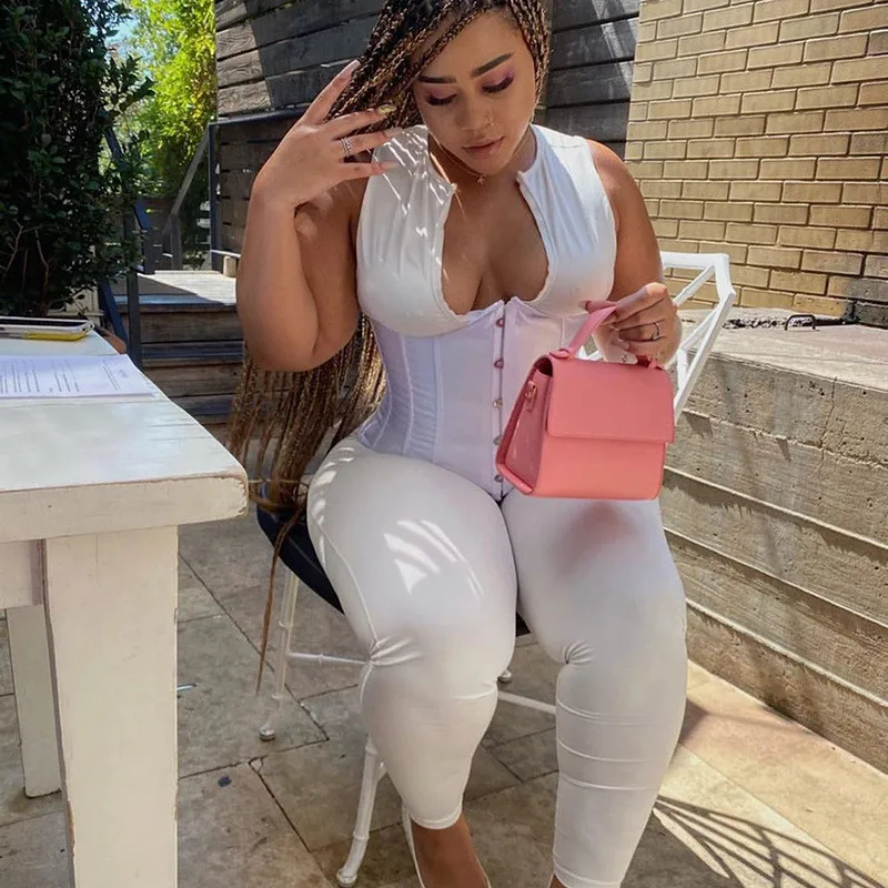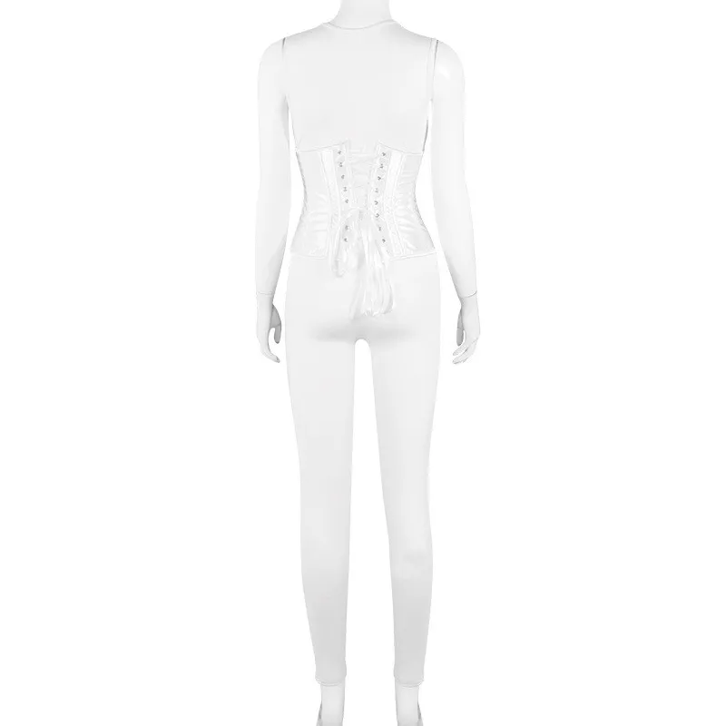 Hugcitar 2020 комбинезон без рукавов бандажный корсет 2 шт осень зима Женская мода уличная одежда комбинезон боди
