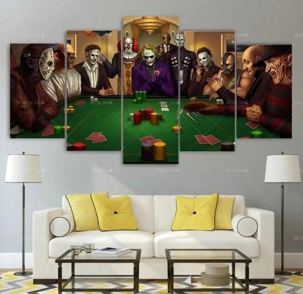 Современные постеры для домашнего декора, 5 шт., покер, ужас, холст в рамке, Техасский ужас, кино, злодеи, настенное искусство, холст, картина, рамка для картины