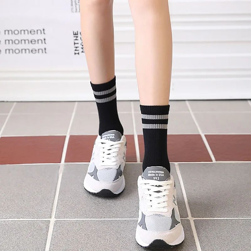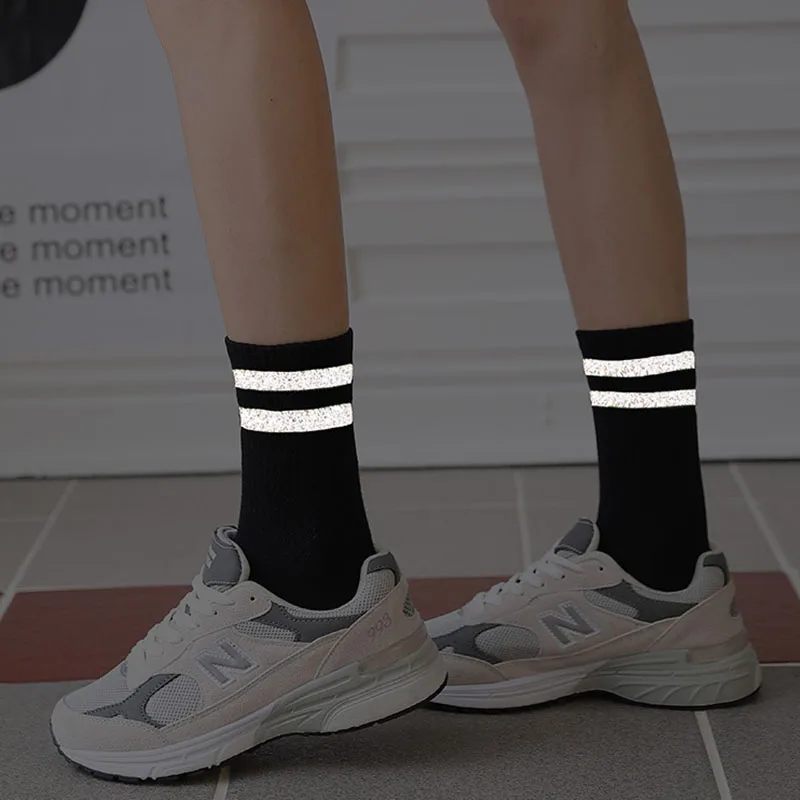 Носки женские ночные яркие в полоску, уличная одежда в стиле хип-хоп, легкие смешные носки в стиле Харадзюку, черные белые, Прямая поставка