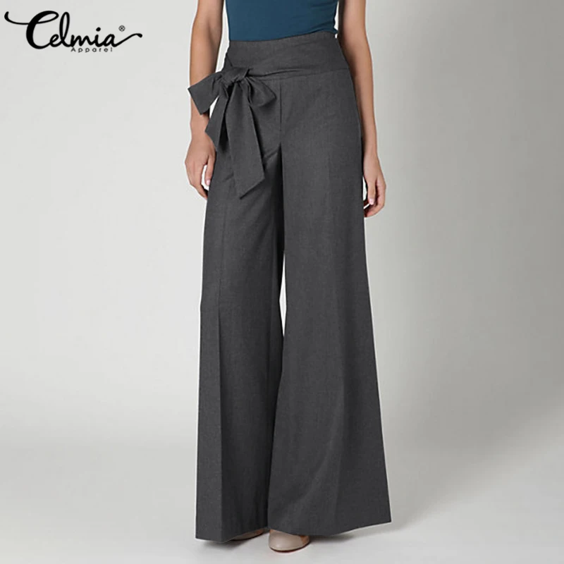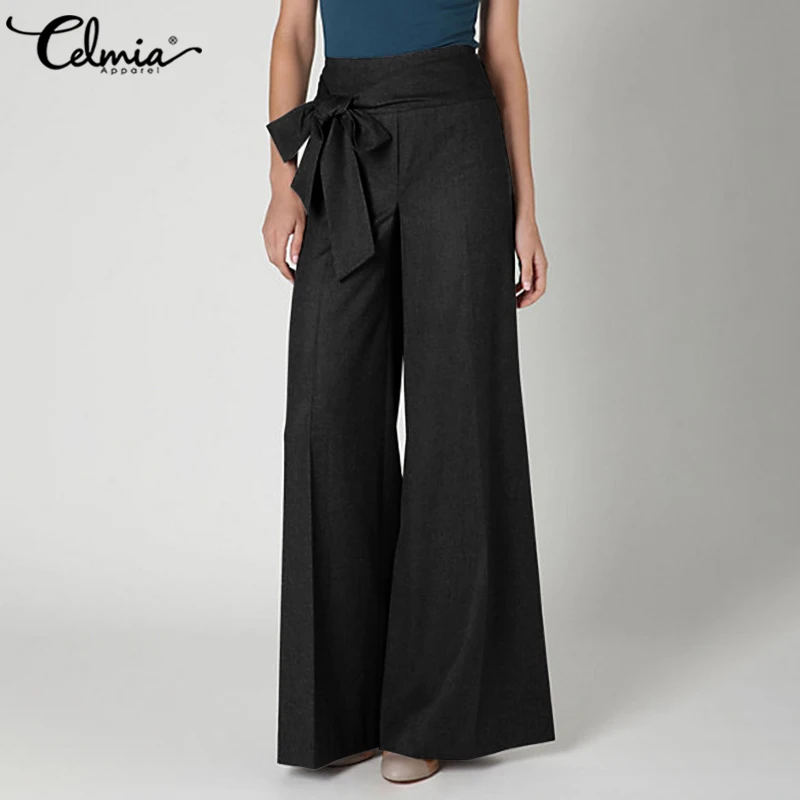 Винтажные широкие брюки 2021 Celmia женские осенние повседневные брюки с высокой талией и поясом модные однотонные офисные брюки свободного покроя на молнии 5XL
